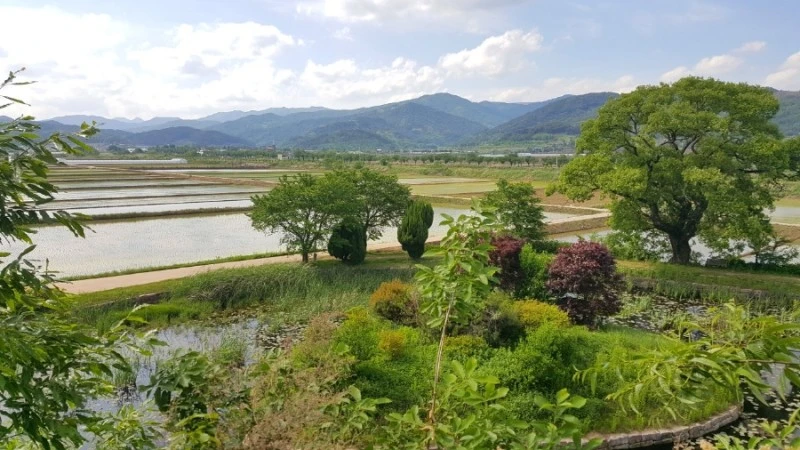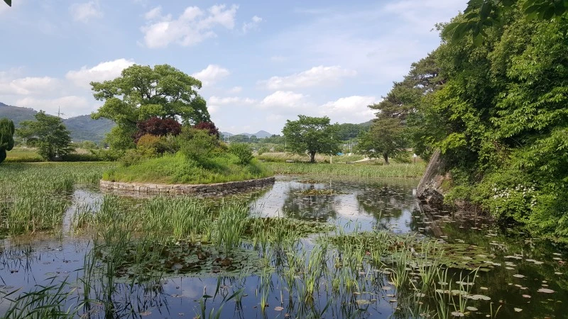 아래는 연지에 석가산이 있고 봄이면 버드나무의 연두빛 잎이 봄바람에 나부끼며 연지와 어울려 아름답고, 여름이면 각양각색의 연꽃이 아름답게 피어나 매미 소리와 함께 시원함과 우아함을 느끼게 한다. 여름날 주변의 푸르른 버드나무와 연지에 핀 연꽃의 아름다움은 환상적인 모습이라고 한다. 그 아름다운 풍경 덕분에 조선 최고의 절세가인인 기생 황진이의 일대기를 다룬 드라마 '황진이'의 촬영장으로도 이용되었다.