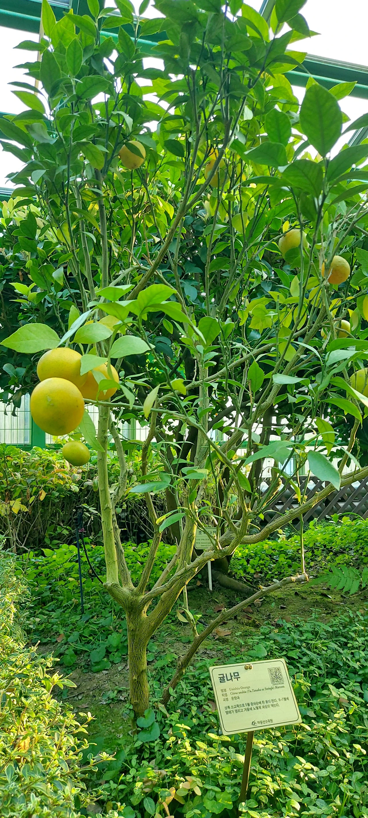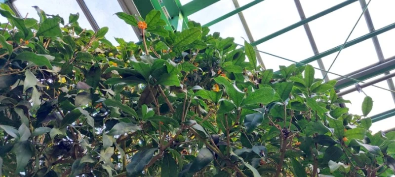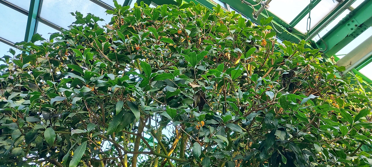 온실로 꾸며진 난대식물원 입구에 들어서니 은목서향이랑 비슷한 좋은 향이 나서 코를 킁킁거리며 온실 주변을 둘러봤는데 처음엔 잘 보이지 않았다. 관람코스대로 입구에서 시계방향으로 돌며 구경하다가 동선을 따라 입구로 가니, 입구 들어오는 방향에서 오른쪽에 바로 금목서 나무가 있었다.