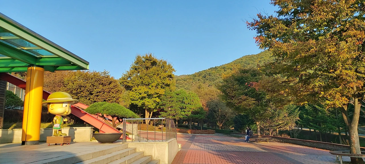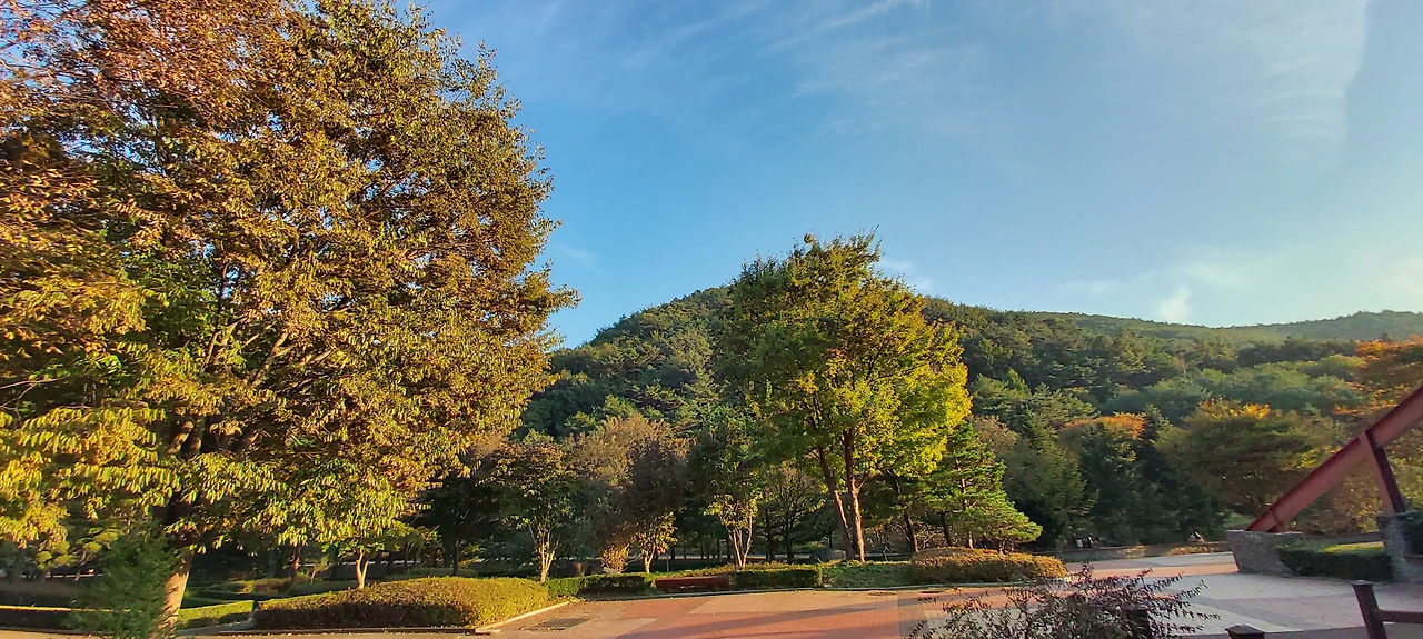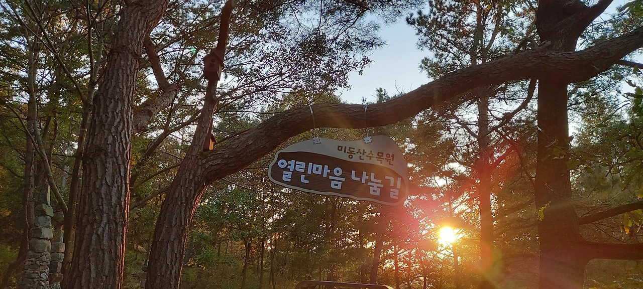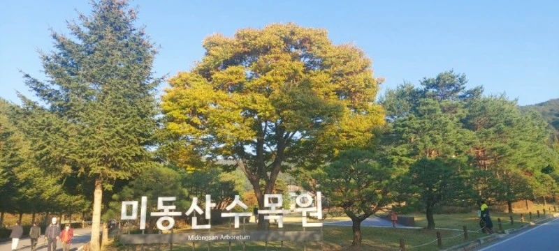 버찌가 바닥에 까맣게 떨어지던 유월에도 아름다웠는데, 초록이 노랑 빨강으로 물들어가는 가을은 또 어떨까? 궁금함과 기대감으로 오후 4시 반쯤 도착한 미동산수목원은 늦은 오후인데도 주차장이 북적일만큼 사람들이 많았다. 많은 이들이 일요일 낮을 수목원에서 즐기고 내려와 집으로 돌아갈 차비들을 하고 있었지만 우리처럼 늦게 들어가는 이들도 꾸준히 이어졌다.