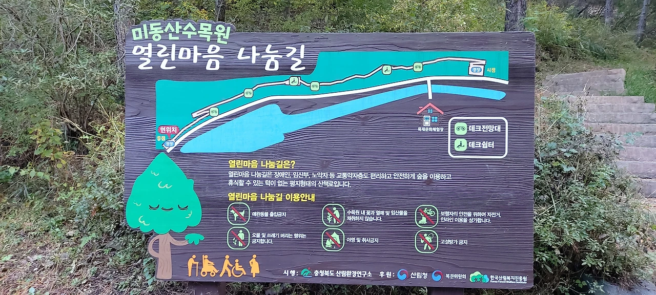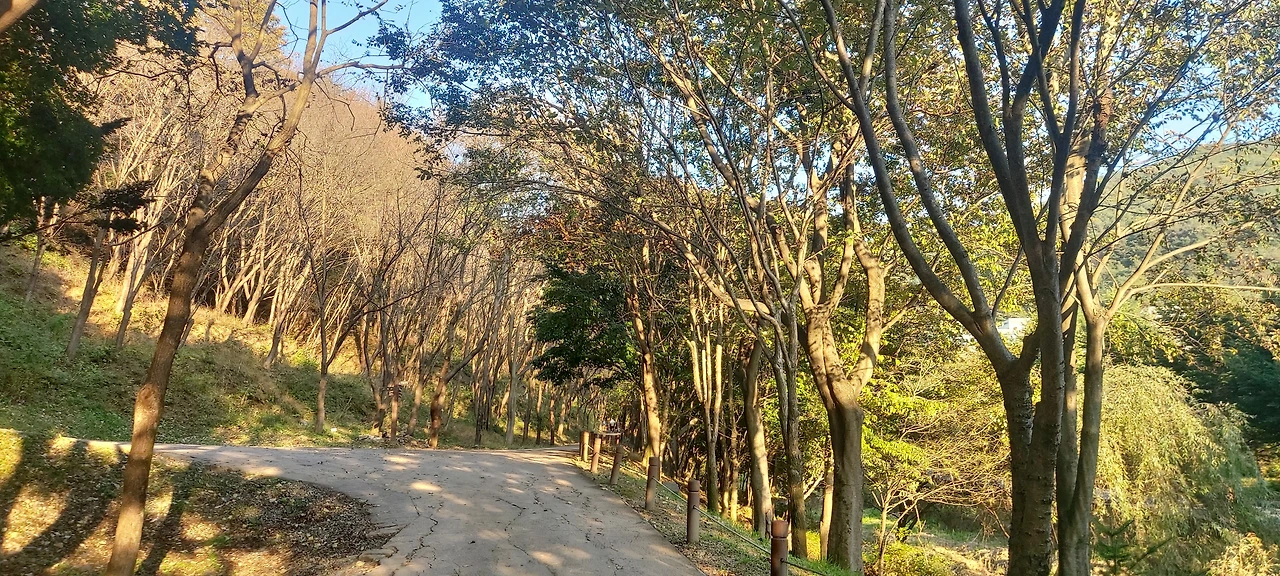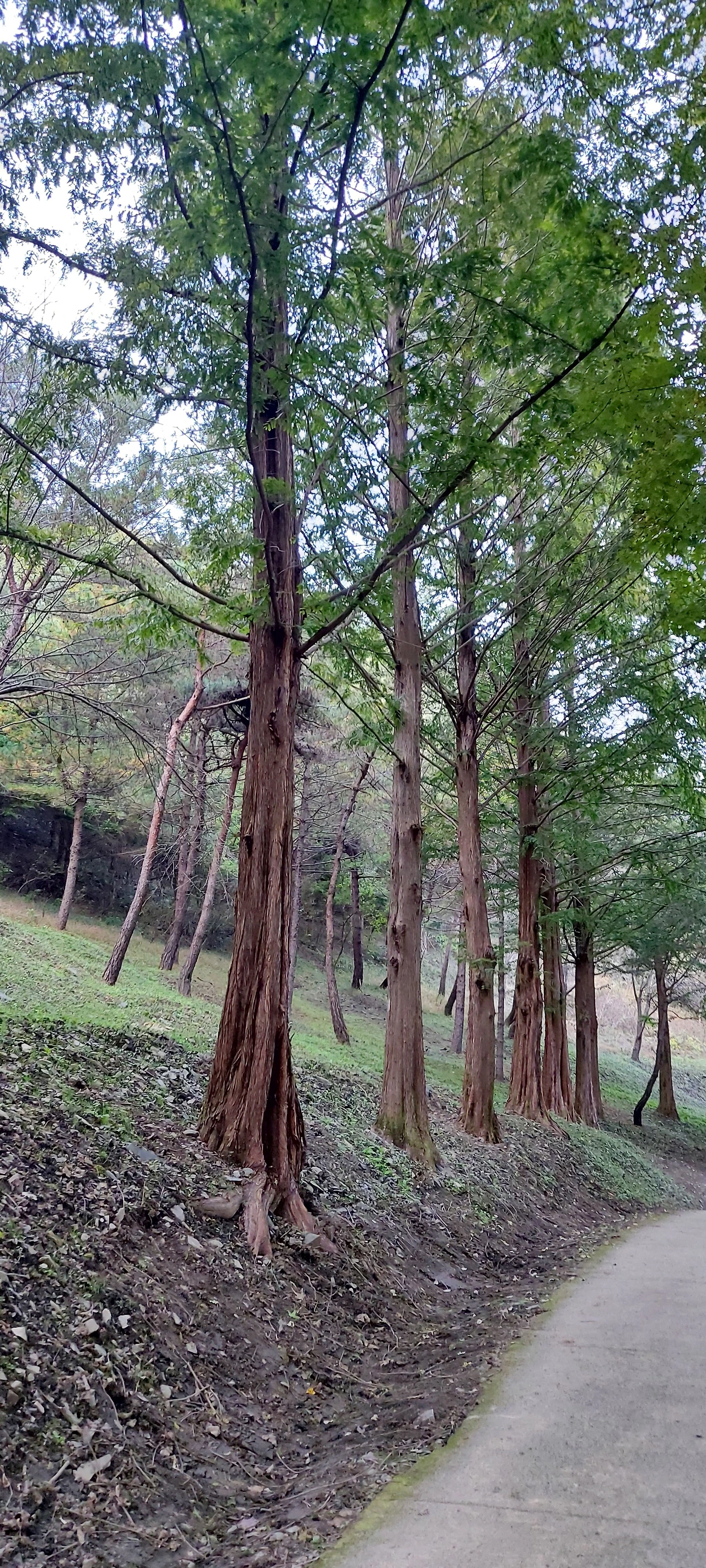 지난번엔 꼼꼼히 둘러보지 못했던 중앙광장과 공사 중이라 막혀있었던 산속 오솔길을 거쳐 수국담채원, 난대식물원, 목공예체험관, 분수연못까지 돌고 산에 난 열린마음 나눔길을 따라 슬슬 내려오는 짤막한 코스로 돌았다.