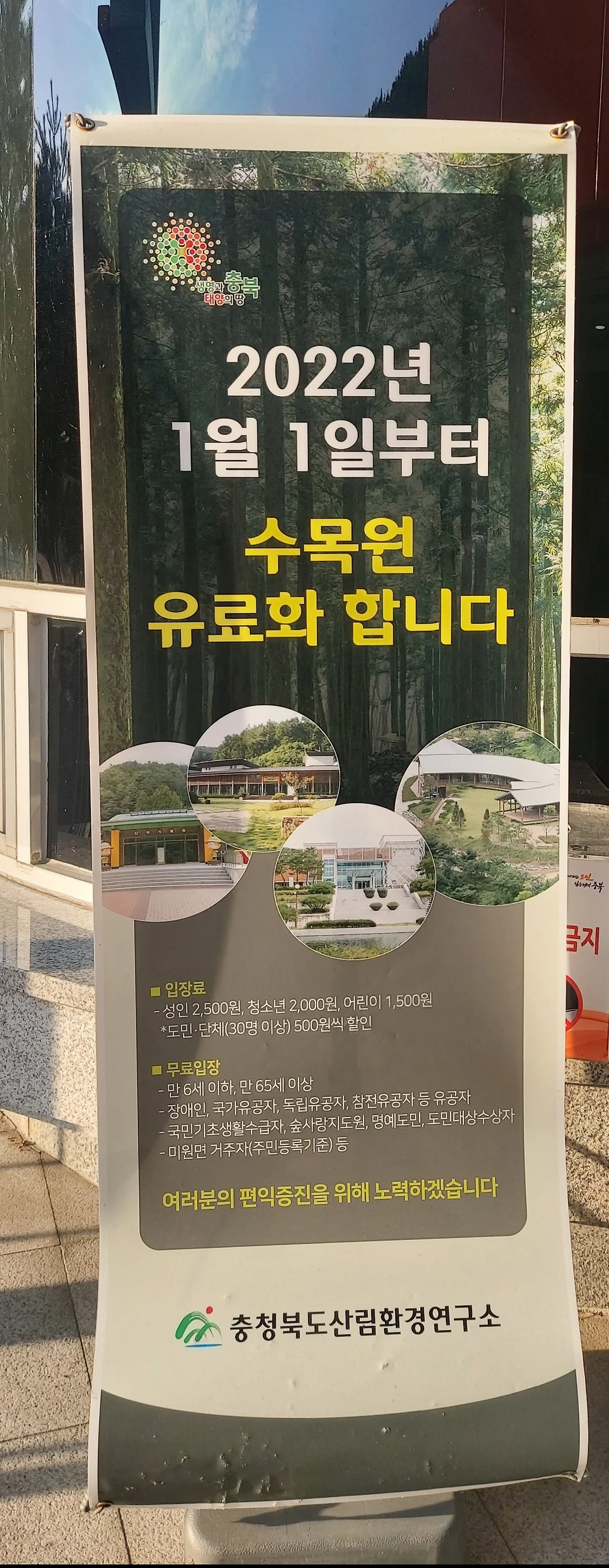 2022년 1월부터는 수목원 이용료를 부과한다는 현수막이 눈에 띄게 서있었다. 입장료를 내고도 들어갈 만큼 잘 정비된 곳이고, 다양한 체험과 볼거리가 풍부한 곳이긴 하지만 그래도 공짜일 때 한 번이라도 더 자주 와야겠다는 생각이 들었다.