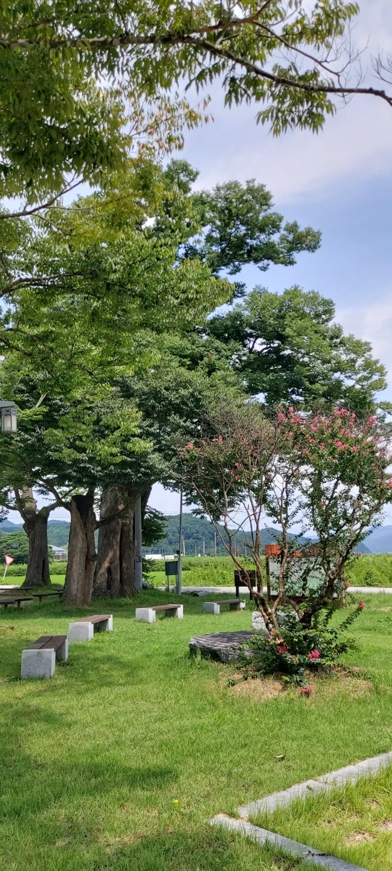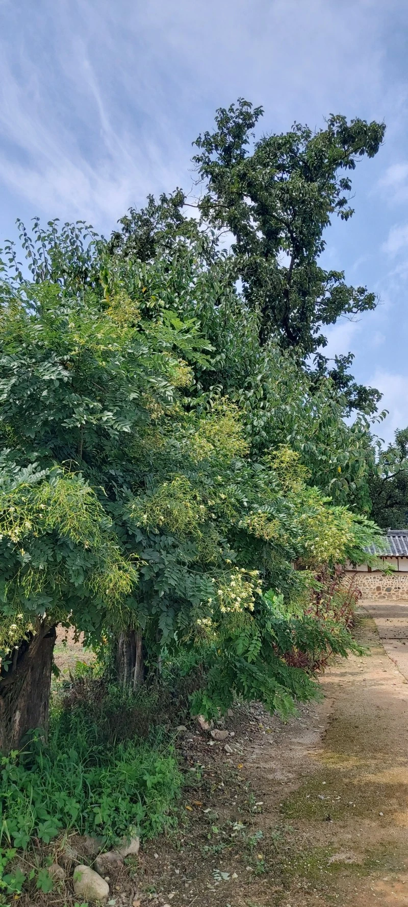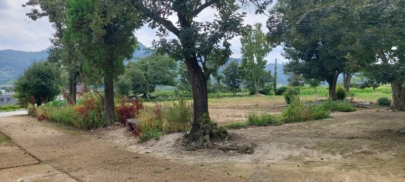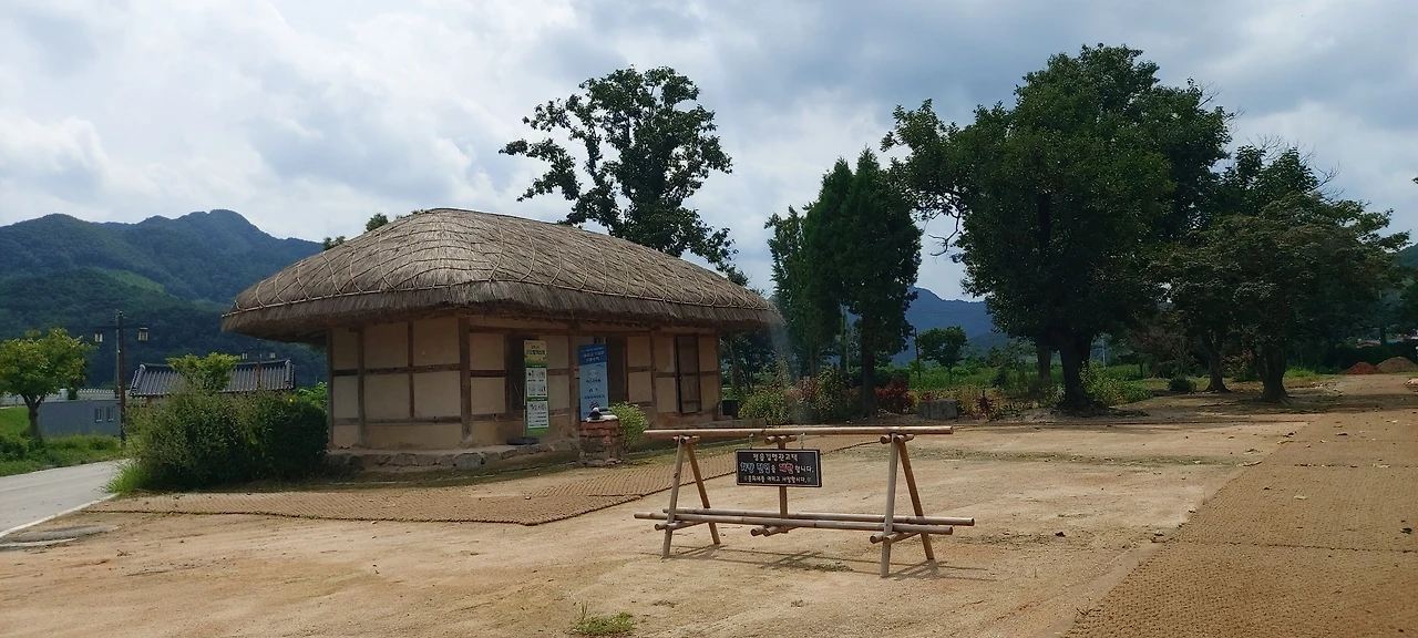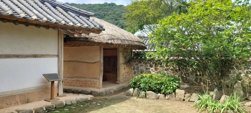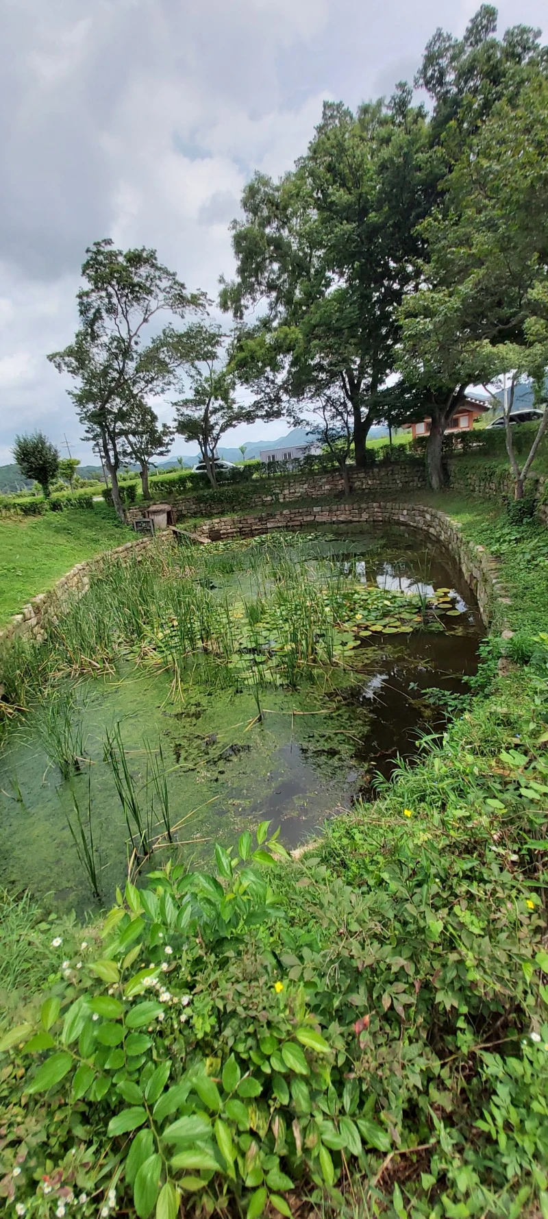 그러나 입구에 있는 한옥스테이 앞에 기와에 그린 그림이라든지 사랑채 마당에 분홍빛으로 피어난 상사화가 한옥의 멋과 운치를 살려주었다. . 9월엔 초록이 무성했던 고택을 둘러싼 나무들이 지금쯤 노랑빨강으로 단풍이 들어 더욱 아름답지 않을까 기대된다.장막을 치고 보수공사중이던 안채도 볼 수 있을 테고.