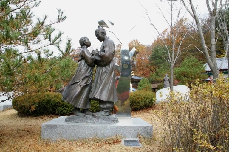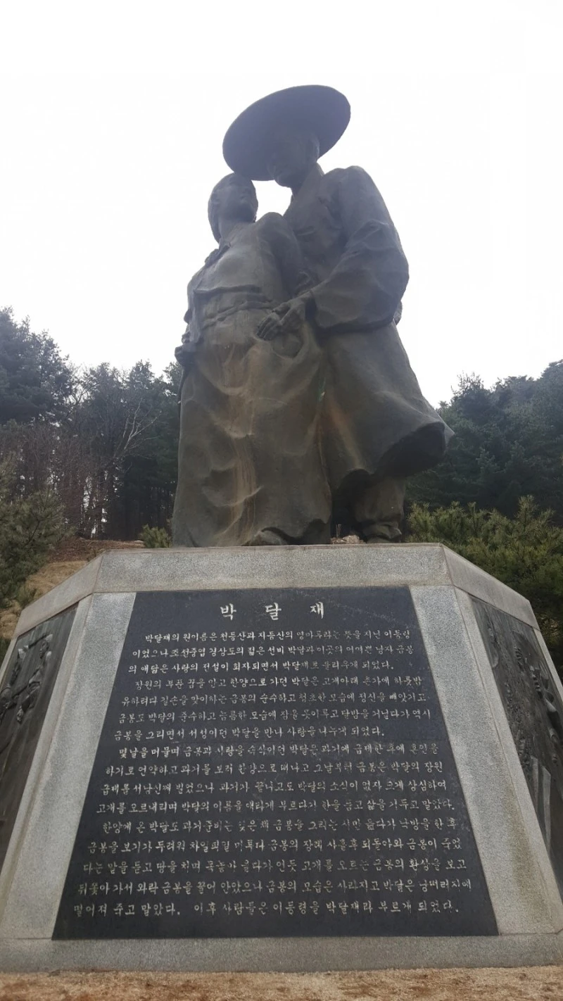 맞긴 맞는데 반만 맞다. 아니 어쩌면 노래로 인해 만들어진 전설일지도 모른다. 박달재 목각공원에 있는 유래비조각상에 소상하게 쓰여진 내용을 간추려보면~