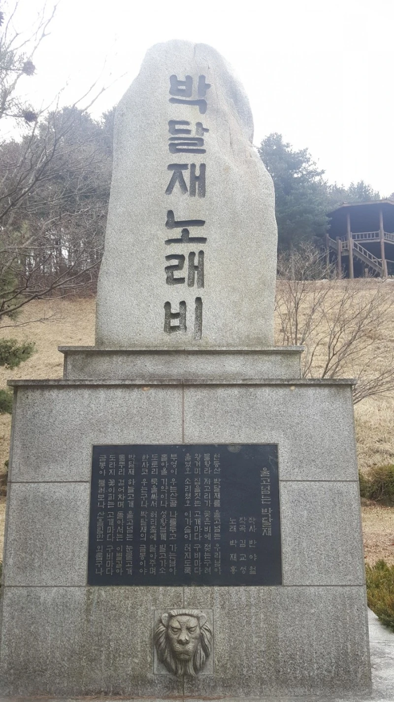 박달재 유래를 새긴 조각상 옆에는 ‘울고 넘는 박달재’ 노랫말을 담은 박달재 노래비가 있다.
