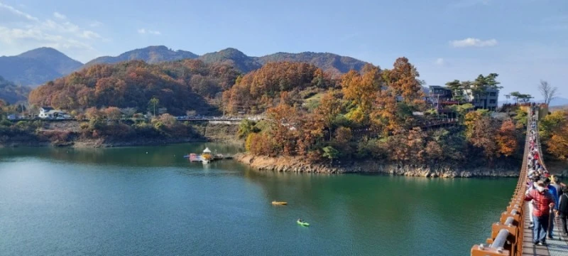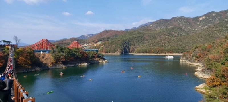 개장빨에 무료입장 혜택까지 있다보니, 옥순봉 출렁다리를 찾는 인파들이 북적북적했다. 지금까지 찾아간 출렁다리 가운데 가장 많은 사람들을 다리 위에서 마주쳤다.
