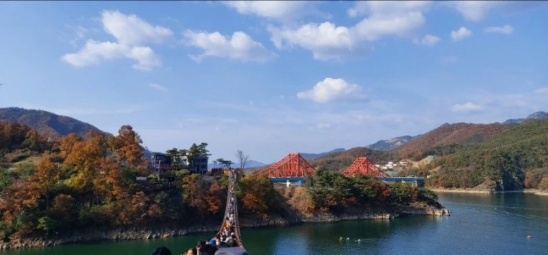 청풍호 위의 주황색 아치형 다리가 인상적 옥순대교 남단과 옥순봉을 잇는 길이 222m의 옥순봉 출렁다리 개장소식을 듣자마자, 사람이 많은 주말을 피해 10월 25일 월요일에 다녀오려고 길을 나섰다가 일이 생겨 중간에 돌아오는 바람에 아쉬움이 크게 남았는데, 11월 6일 토요일에 재도전해서 성공했다
