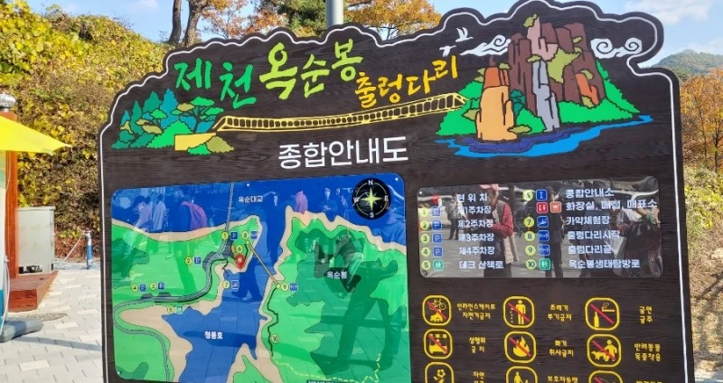 측에서 허가를 받지 못했기 때문이라고 한다. 제천시는 조만간 매입 관련 예산을 확보해 출렁다리와 우리나라 명승 48호인 옥순봉을 잇는 정식 탐방로를 조성할 계획이다.