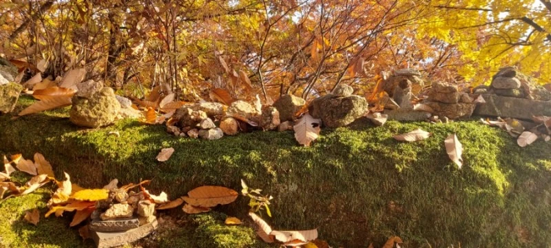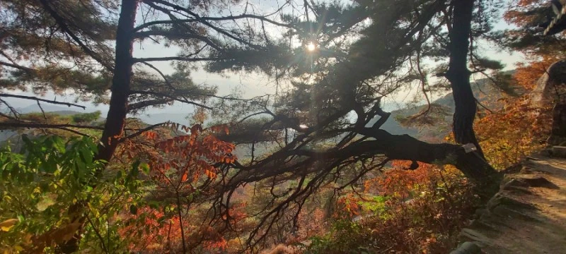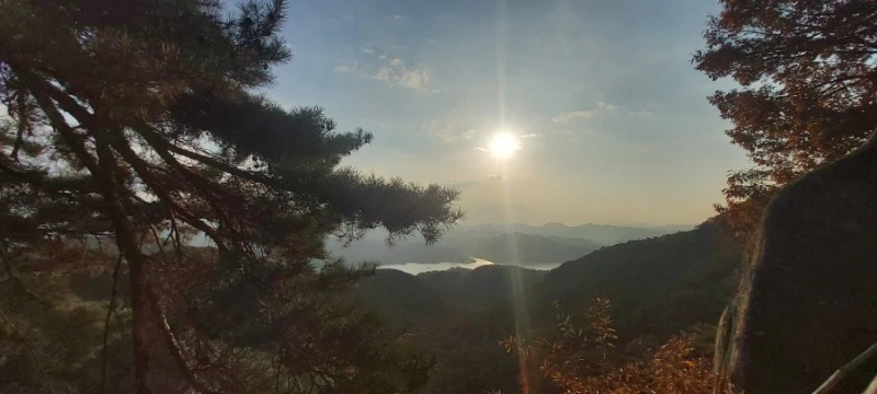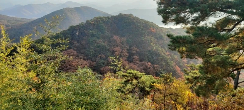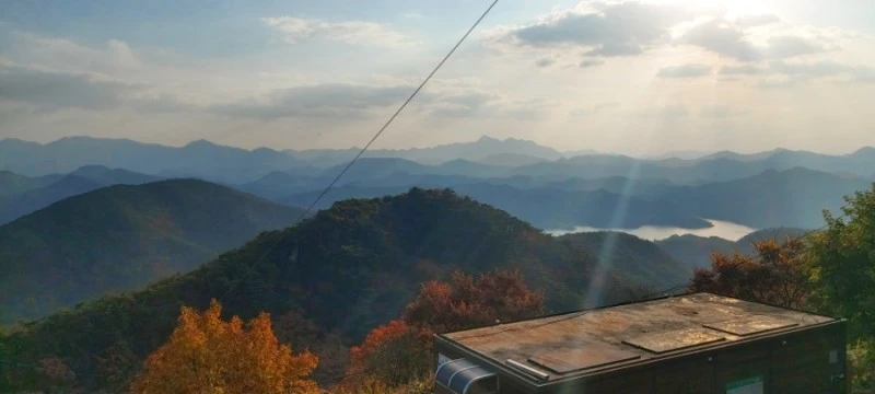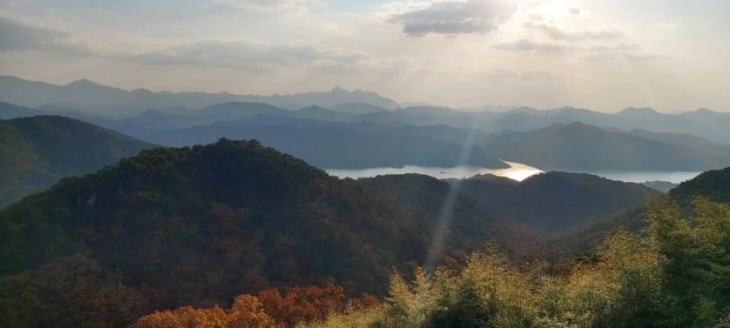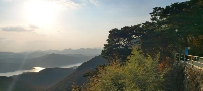 멀리 잔잔한 청풍호가 산으로 겹겹이 둘러싸인 모습이 눈앞에 쫘악 펼쳐진다. 산길을 올라오며 힘들었던 몸의 피로가 한순간에 다 풀려버리는 듯한 멋진 풍경이다. 마침 단풍이 절정을 이룬 금수산과 야미산 두무산 비봉산, 멀리로 월악산과 황학산까지 한눈에 들어온다. 수많은 사람들이 힘들어도 꿋꿋이 이곳까지 걸어서 올라오는 까닭이 단숨에 이해된다.