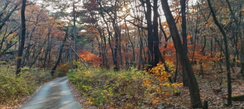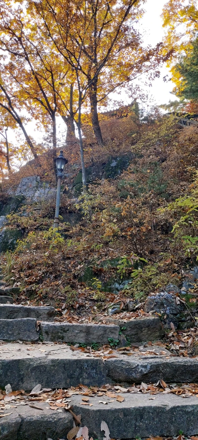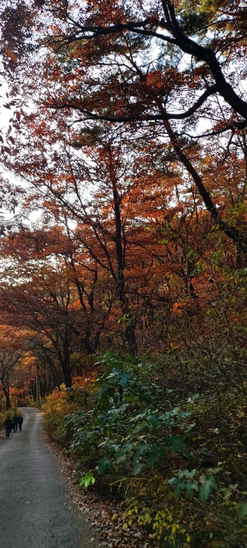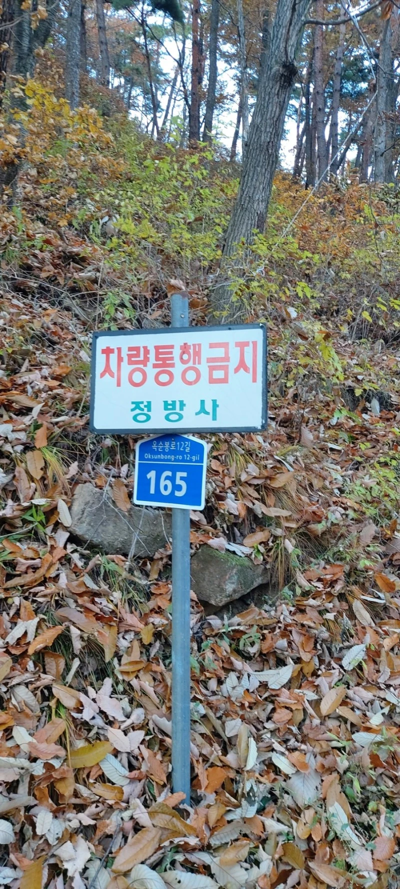 정방사를 내비게이션에 찍으니 절까지 올라가는 도로가 쭉 나있어서 별 생각없이 내비 따라서 차로 갔는데, 중간중간 교행할 공간이 있긴 했지만 산속에 난 외길 1차로여서 정방사에서 내려오는 차들이 많을 땐 한참을 뒤로 물러나 기다려야 하는 상황들이 빈번하게 발생했다. 큰 도로에서 정방사까지 2km의 산길을 30분 넘게 걸려서 겨우 도착했다. (우리 앞에서 한동안 길라잡이해주던 카니발 타신 분들은 도저히 이렇게는 못 가겠다고 중간에 차를 돌려서 내려가버리셨다. 조금만 참고 올라가셨음 진짜 좋은 구경하셨을 텐데 아까비~)