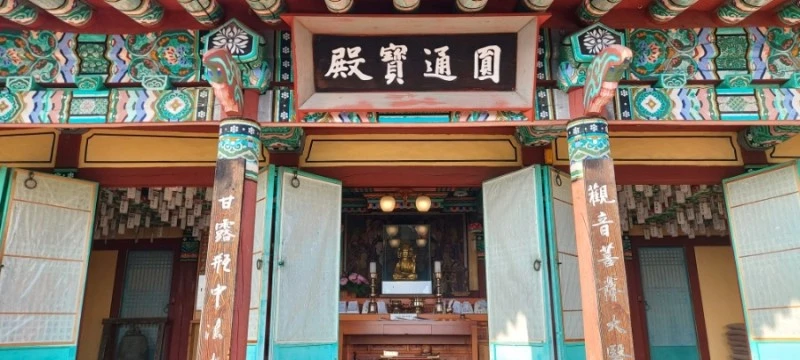 관세음보살좌상을 주존으로 봉안한 법당은 앞면 6칸, 옆면 2칸의 팔작 지붕이다. 건축연대는 정확히 알 수 없으나 조선 후기 (순조와 헌종) 두 차례 크게 중수되었다. 관음보살상은 목조로 조성되어 법당 주불로 봉안되어 있었는데, 복장 발원문이 1689년(숙종15년)에 작성된 것으로 미루어 이 무렵에 봉안된 것으로 보인다.