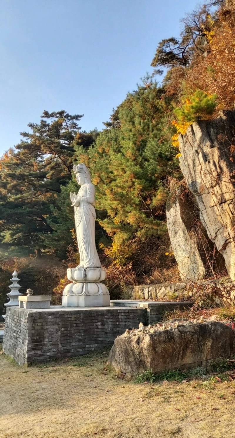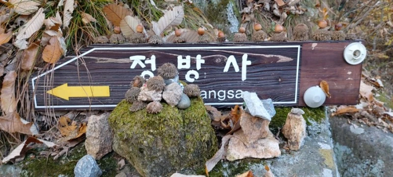정방사에 다다르면 그 정도 고생할만한 가치가 있음을 알 수 있다.(꼬불꼬불 산길에 도토리깍지를 모자처럼 쓴 동자승 인형들이 반겨주는 모습도 빙그레 웃음짓게 한다)