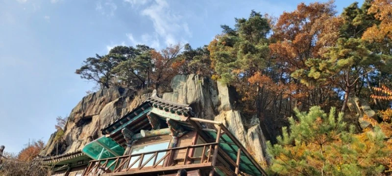 절의 규모는 크지 않아서 작은 암자 수준구나 했는데 역시나 정방사 소개문을 보니 원래 금수산에 세워진 상, 중, 하 세 개의 암자 가운데 가장 높게 위치한 사찰이었다고 한다