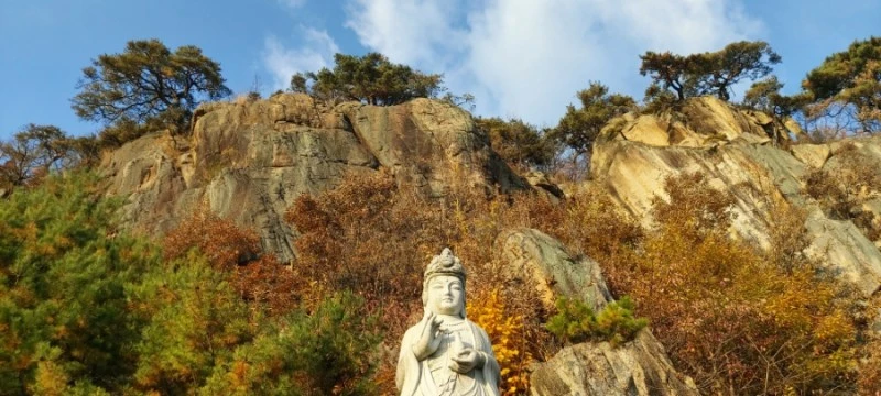 이러한 인연으로 창건된 사찰이 금수산과 청풍강(이 앞을 흐르는 한강을 부르는 다른 이름인 듯)의 맑은 물과 바람이 꽃향기와 어우러져 아름답게 펼쳐진 절, 정방사(淨芳寺)이다. 제천에 가시면, 금수산 의상대 아래 정방사에서 청풍호를 바라보는 아름다운 전망을 놓치지 마시길 바란다.