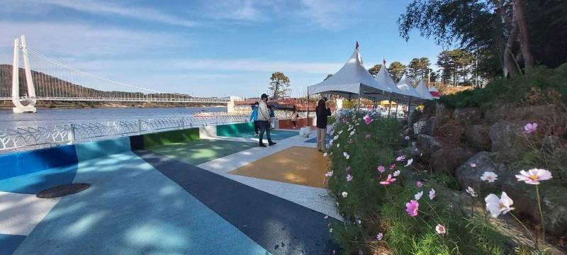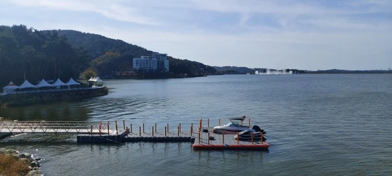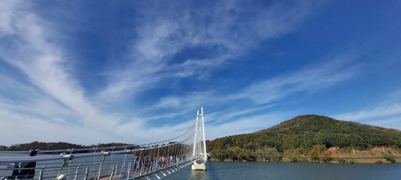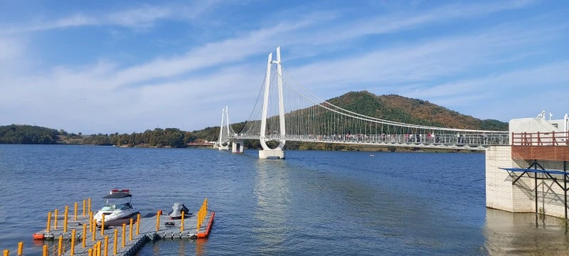 드라이브 좋아하는 남편 따라서 24km에 이르는 탑정호 둘레도 참 많이 돌았고, 2017년에 개장한 3km 길이의 탑정호수변둘레길도 자주 걸었다. 그런데 낚시꾼이나 출사족들 빼곤 비교적 한산하던 탑정호에 전국에서 사람들이 몰리는 일이 벌어졌으니, 바로 2021년 7월 28일에 임시개장한 탑정호 출렁다리 때문이다.