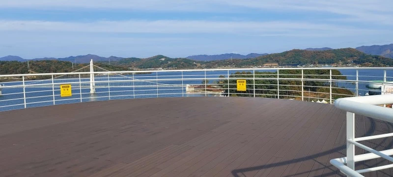 카페 위층엔 옥상으로 올라갈 수 있는 계단이 있어, 옥상에 마련된 데크에서 거침없이 뚫린 전망의 탑정호와 출렁다리 풍경을 감상할 수 있다. 탑정호 둘레의 건물 중에선 가장 높은 곳이 아닌가 싶다. 난 이곳이 상당히 마음에 들었다. 전국의 투썸플레이스 매장중에서 가장 전망이 좋은 곳으로 추천!