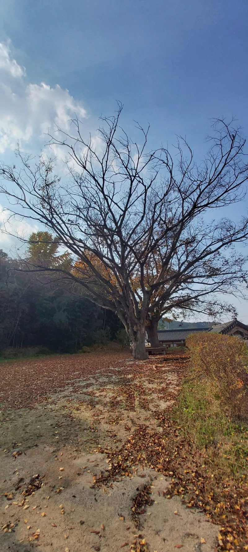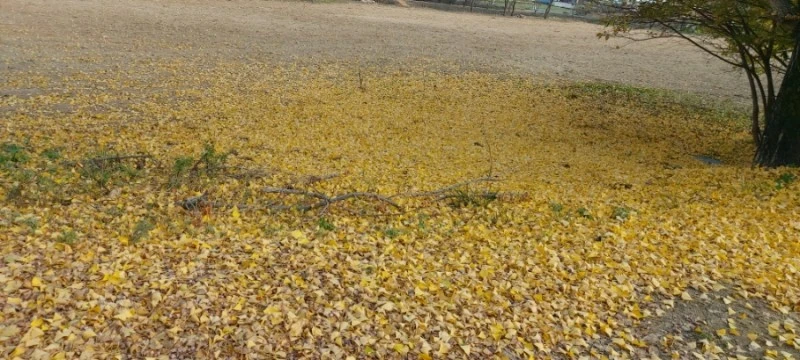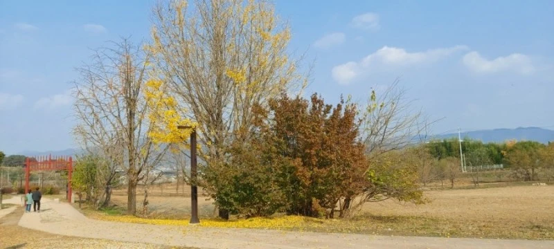 주차장에서 75m쯤 떨어진 돈암서원까지 들어가는 길에는 바닥에 떨어진 갈색 느티나무잎이 가득하고, 노란 은행나무 잎이 우수수 떨어져 늦가을의 풍취를 돋아주고 있었다.