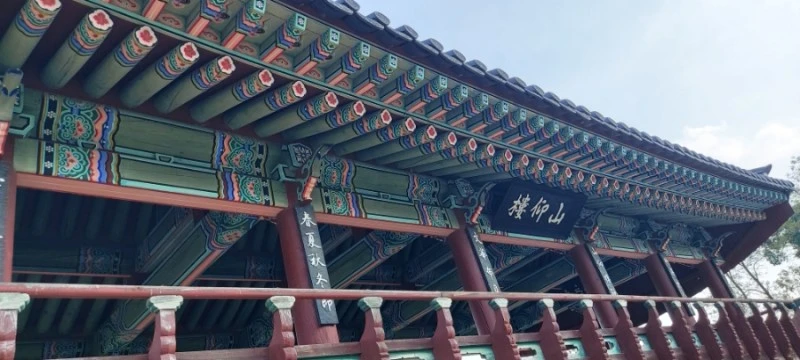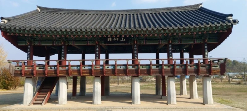 서원 입구에 하마비와 홍살문(경건한 마음으로 출입하라는 의미에서 붉은 칠을 한 문)이 있고, 정면에는 2006년에 건축된 산앙루가 있다.
