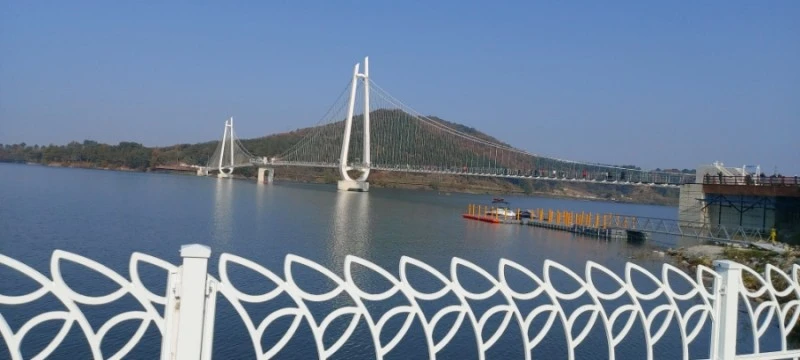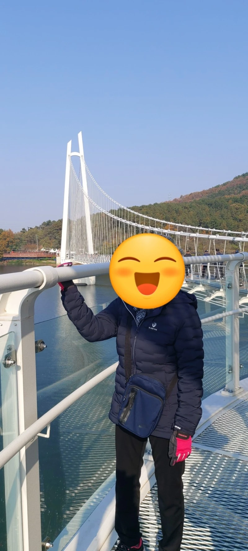 여유롭게 출렁다리 건너며 사진 찍기 좋은 곳 나올 때마다 어머님 독사진, 남편과의 투샷을 찍었다. 나이 드니까 영 사진 찍기 싫다시며 처음엔 카메라를 피해 다니시던 어머님도 우리가 계속 카메라를 들이대니 나중엔 자연스럽게 V자를 손으로 하시며 즐겁게 모델이 되어주셨다. 출렁다리라 해도 크게 흔들리는 편이 아니어서 평소에도 어지럼증이 있으신 어머님이지만 큰 무리없이 600m의 긴 다리를 잘 걸으셨다.