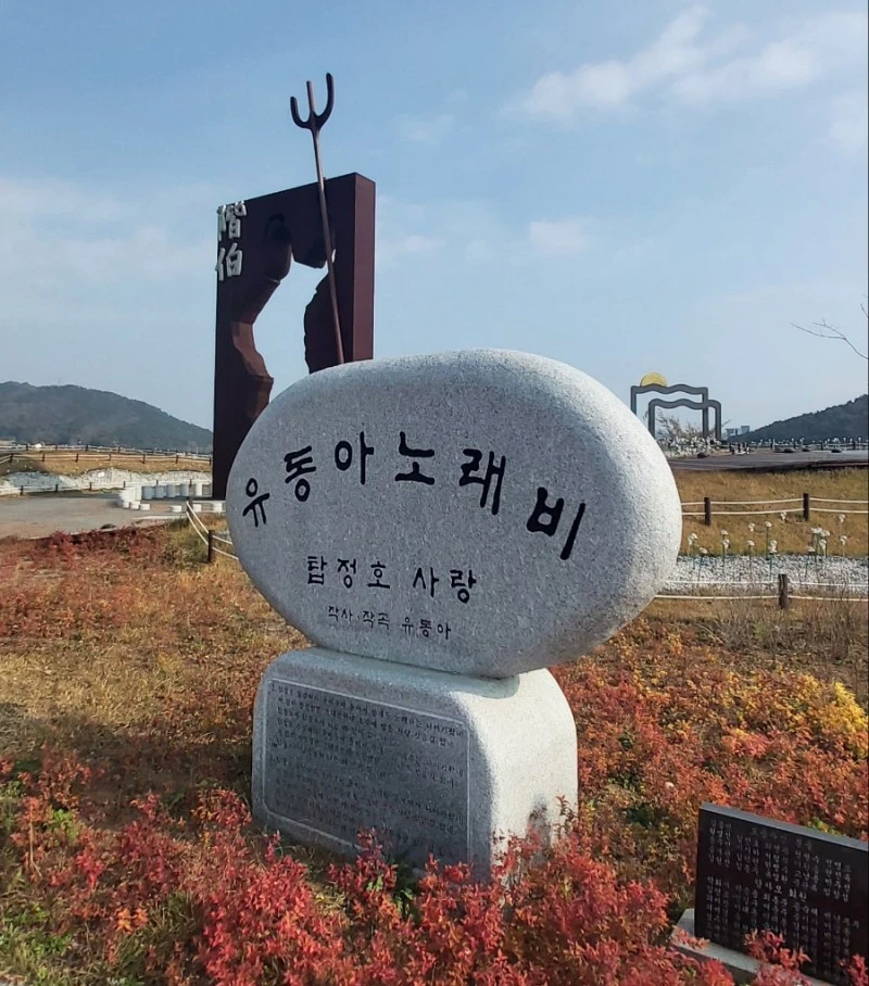 유동아 노래비에는 유동아 작사 작곡의 '탑정호 사랑' 2절이 새겨져있다. 그 중 1절만 소개해본다.