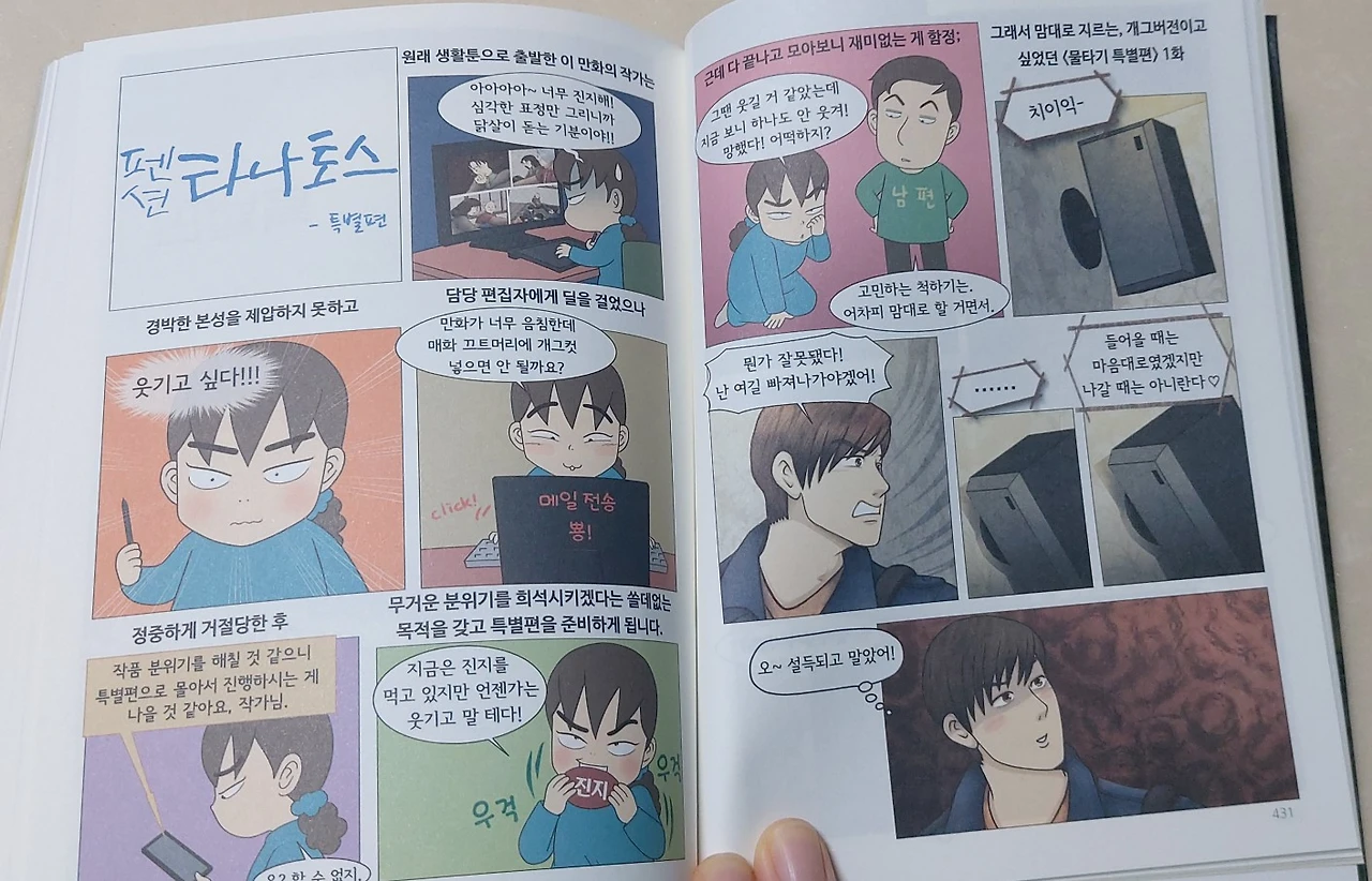책 읽다보면 언뜻 '오징어 게임'도 떠오르는데, 이 만화가 드라마 '오징어게임'보다 먼저 나왔다는 사실을 기억하시길 바란다. 그리고 한 사람만 남고 나머지는 다 죽어야 끝나는 살벌한 '오징어게임'과 달리, '펜션 타나토스'에서는 하나를 살리기 위해 많은 이들이 죽었고, 그것마저도 따스한 반전이 있다는 사실에 주목하시길!