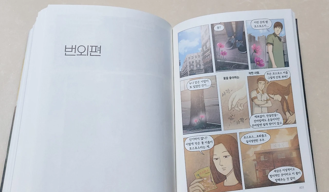 마감에 열중하다보니 간암도 어느새 완치되었다고 하는 작가 후기를 보니, 작품 따라 작가의 운명이 정해진다는 설처럼 우리가 살아야 할 이유를 세상에 전하고자 한 작가의 의도가 작가 자신마저도 살린 게 아닌가 한다.