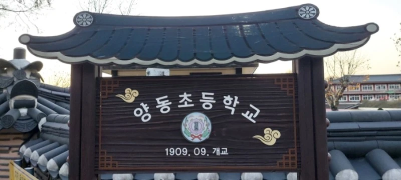 마을 초입의 유물전시관 뒤로는 1909년 사립양좌학교로 설립인가를 받아 1913년에 양동공립보통학교로 개교한 양동초등학교가 있다. 설립당시로부터 무려 112년의 역사를 이어온 학교이다. 경주교육청 지정 민속실 운영 시범학교로 지정되었으며, 전통문화 계승발전을 위해 한자와 사자소학 교육을 실시하고 있다는데 여느 학교건물과 달리 한옥을 본떠 만든 기와지붕으로 된 교사가 인상적이다. 메타세콰이어가 학교 담장을 따라 큰 키를 우쭐대고, 교목인 플라타너스는 운동장 곳곳에서 연식을 자랑하는데 모래흙으로 된 운동장 주변에는 우레탄 트랙이 빙 둘러져있고, 오징어게임 사방치기 8자미로 등이 그려져있어 어릴 적 동심을 자극한다.
