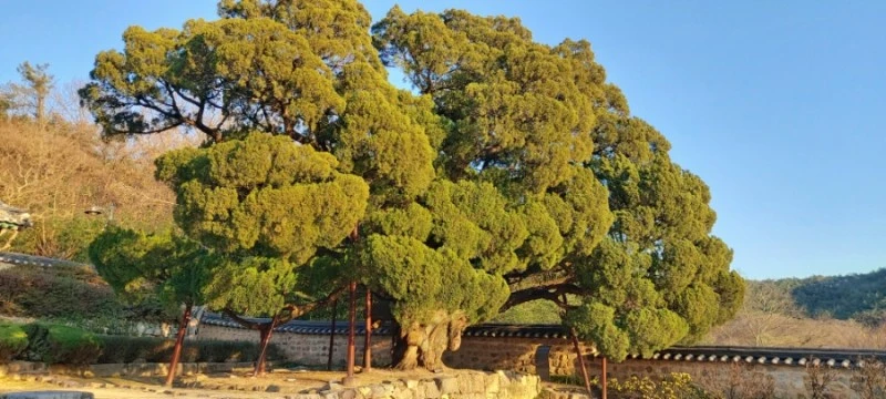 송첨종택 마당을 지키는 600년 된 멋드러진 향나무와 돌담장 위로 아름답게 저무는 석양 노을을 보지 못했다면 진짜 입장료가 아깝다는 생각이 들 뻔했다.