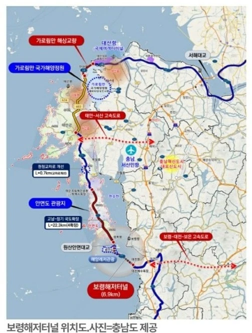 보령해저터널의 개통은 단순히 보령 대천항에서 태안 영목항까지 이동시간을 기존 90분에서 10분대로 80분 단축하는 것에 그치지 않는 획기적인 교통환경 변화이다. 국내 관광지도를 충남을 중심으로 새롭게 그리는 신호탄으로 8조 4579억 원 규모 서해안 신관광벨트가 조성될 예정이라고 한다.