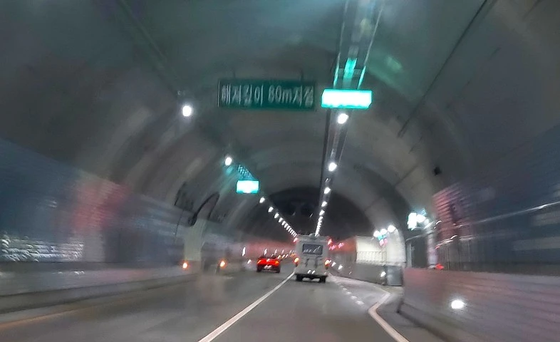 터널 입구에 들어서면 경사 5도가량의 내리막길이 시작된다. 상하행 2차로로 분리된 왕복 4차로 도로는 해수면에서 80m 아래 지점까지 내려간 뒤 다시 완만한 오르막길로 육지까지 연결되어있어서, 내리막길 지나서 조금 가면 '해저시점' 표지판이 보이고 중간쯤에 '해저 80m 지점'이, 오르막길 구간 지나 출구 나가기 얼마 전에 '해저종점' 표지판이 보인다.