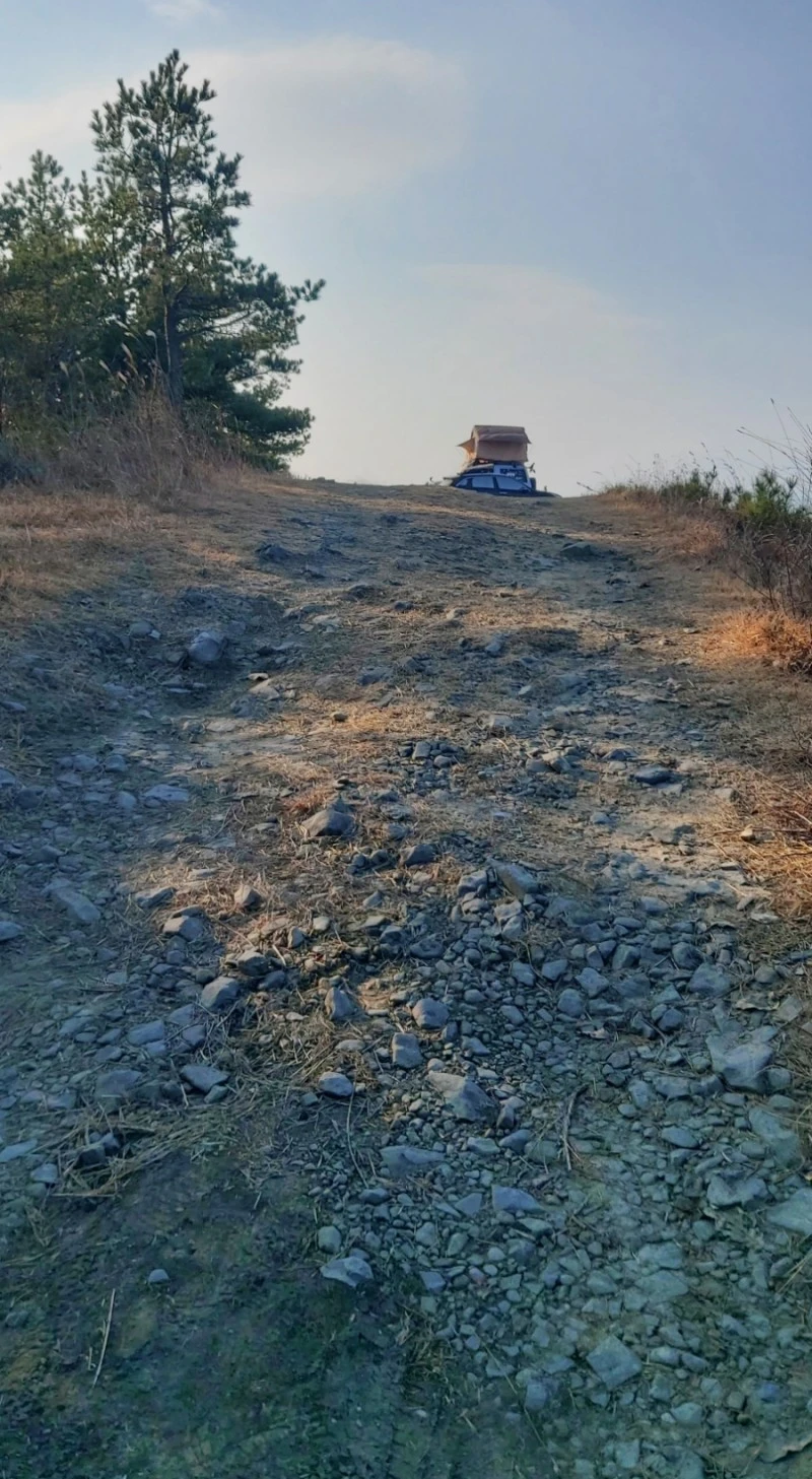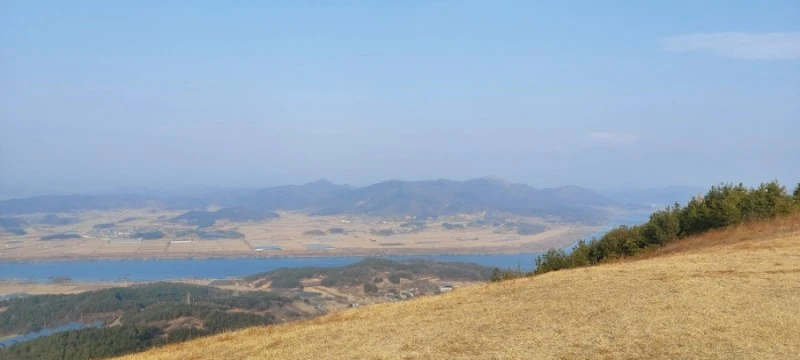 한창 가을에는 억새가 장관인 능선길을 조금 더 가면 헬기장이 있는 정상에 이르는데 이번엔 여기까지 가진 않았다. 손가락이 얼 것처럼 추워서 활공장에서 주변 풍경 둘러보고, 사진 몇 장 담는 것으로 끝내고 차를 세워둔 곳으로 서둘러 돌아갔다. 그 사이 차안에서 차박중이셨던 다른 한 분도 깨어서 기지개를 펴며 아침을 맞이하고 있었다.