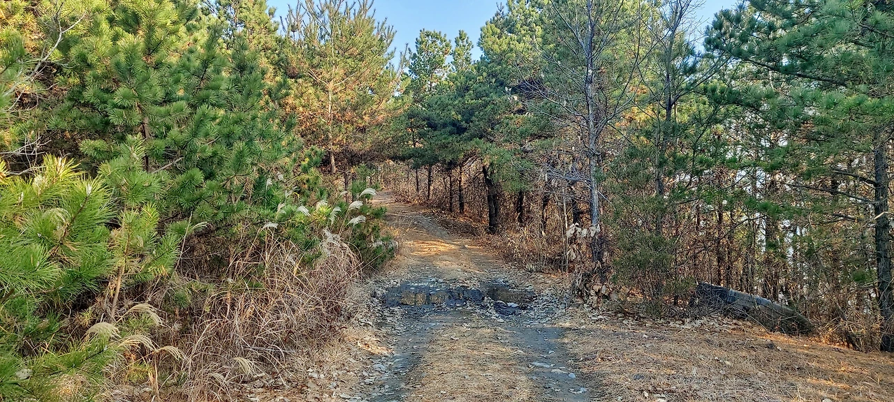 차로 갈 수 있는 곳이라면 최대한 차를 이용해 산을 오르는 우리는 차를 타고 올라갔는데, 임도 중간쯤에서 일찌감치 산행을 마치고 내려오시는 노부부를 마주쳤다. 만약에 그분들이 차를 타고 내려오고계셨다면 중간에 교행할 공간이 없어서 꽤나 애를 먹었을 뻔 했다.