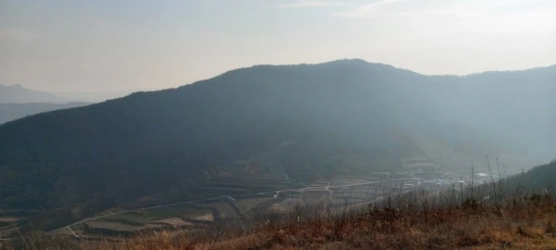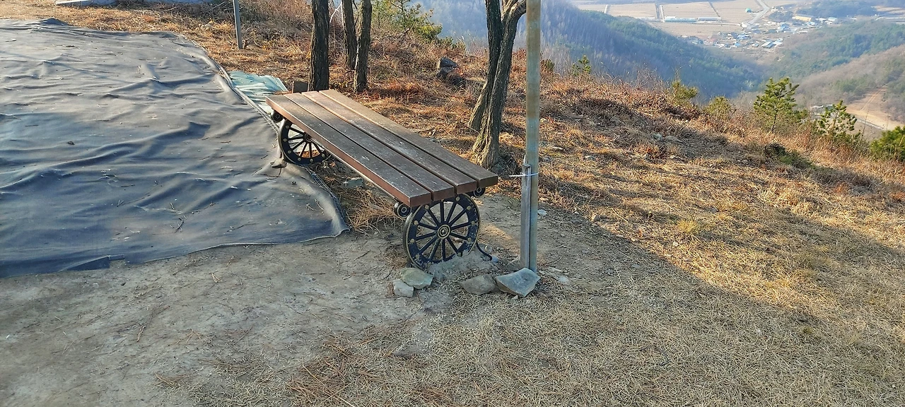 산 꼭대기에 패러글라이딩 활공장(상주 활공랜드)이 생기면서 상주시 중동면 회상리에서 정상까지 도로가 났다. 예천군 풍양면 효갈리쪽 도로는 그 전부터 있던 임도이다. 331m의 낮은 산이지만 특이하게도 이 산에는 에델바이스가 자생하고 있었는데 도로가 나면서 산이 많이 훼손되자 멸종 위기에 처했다니 안타까운 일이다. 산의 정상 부근에서 아직까지도 피어있는 개쑥부쟁이를 만나 신기해하며 사진을 찍었는데, 눈 크게 뜨고 주변을 잘 찾아봤으면 에델바이스도 찾았으려나? (어쩌면 에델바이스라기 보다는 한국의 에델바이스, 조선화융초라고도 하는 솜다리가 아니었을까 싶다)
