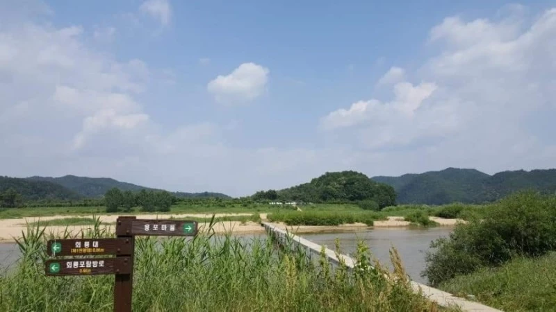 오늘 전국적으로 폭설이 내리고 기온도 영하로 내려가 매우 춥다고 한다. 저 뿅뿅다리 옆 숲그늘에 돗자리 펴고 누워서 더운 날 피서하는 상상을 하며 추위를 물리쳐야겠다. 회룡포 뿅뿅다리 걷는 상상만으로도 충분히 따숩지만 말이다.