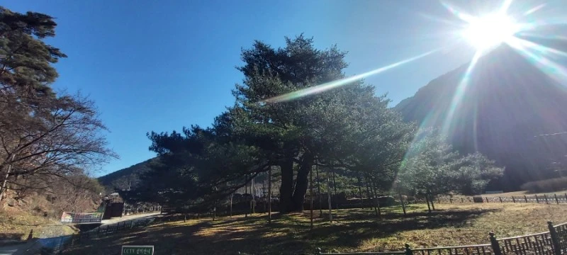 마지막으로 서원리 정이품송 부인소나무를 둘러보았다. 법주사 앞의 정이품송이 점점 쭈그러드는 것에 비해 서원리 소나무는 더더욱 풍채가 좋아지고 있다. 한겨울인데도 초록잎들이 무성한 소나무 모습이 보기 좋았다.