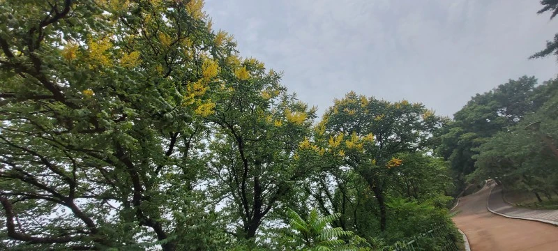 능소화 필 무렵에 노랗게 피어나는 염주나무인 모감주나무 꽃이 흐드러지고, 장미정원에는 각양각색의 장미가 가득하답니다. 훈훈한 여름 기운 받아 따뜻한 하루 보내세요~^^