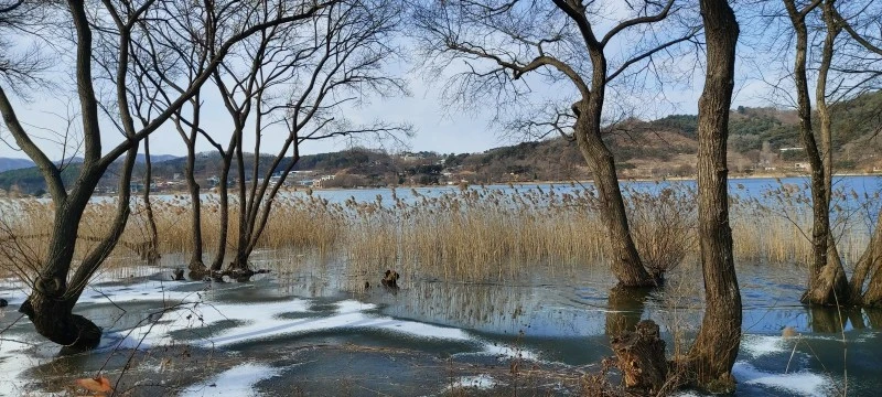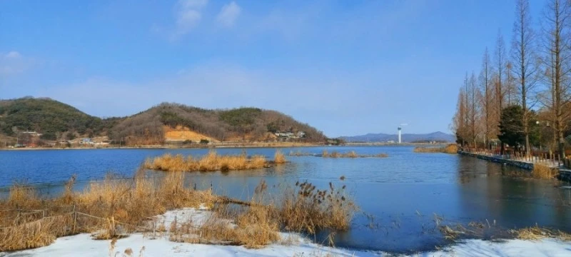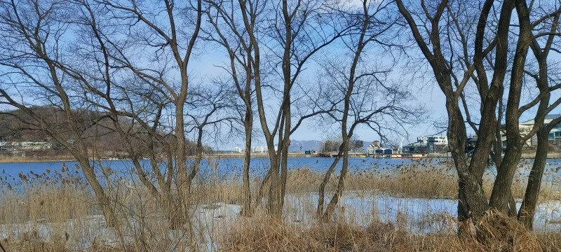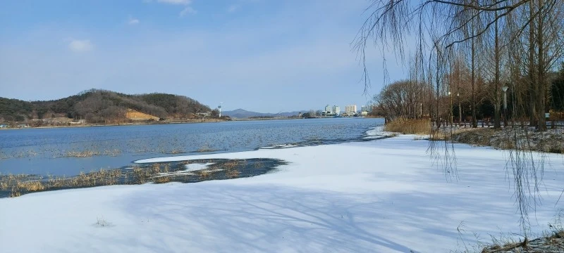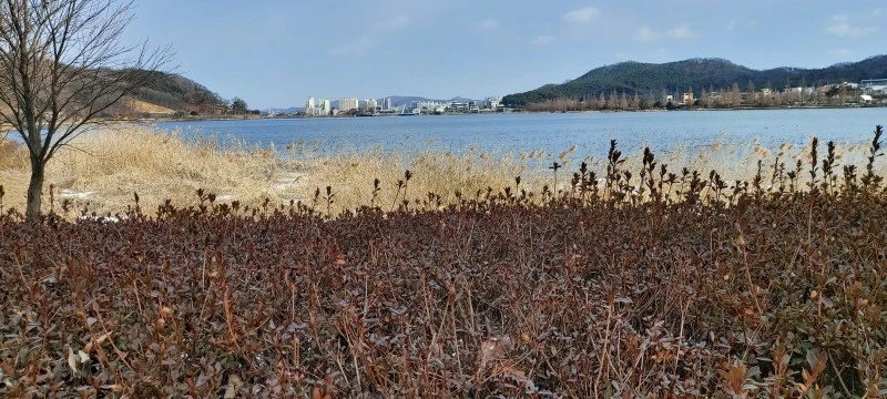 전염력 강한 오미크론 때문에 하루에 확진자만 5만 명을 넘어가는 코로나 시기에 사회적 거리두기 확실히 하면서, 걷기 운동과 멋진 구경을 동시에 할 수 있는 곳으로 호수만 한 데가 있을까 싶다. 그래서 설 연휴 끝나가는 주말에 아산 신정호수를 찾았다. 줄여서 신정호.