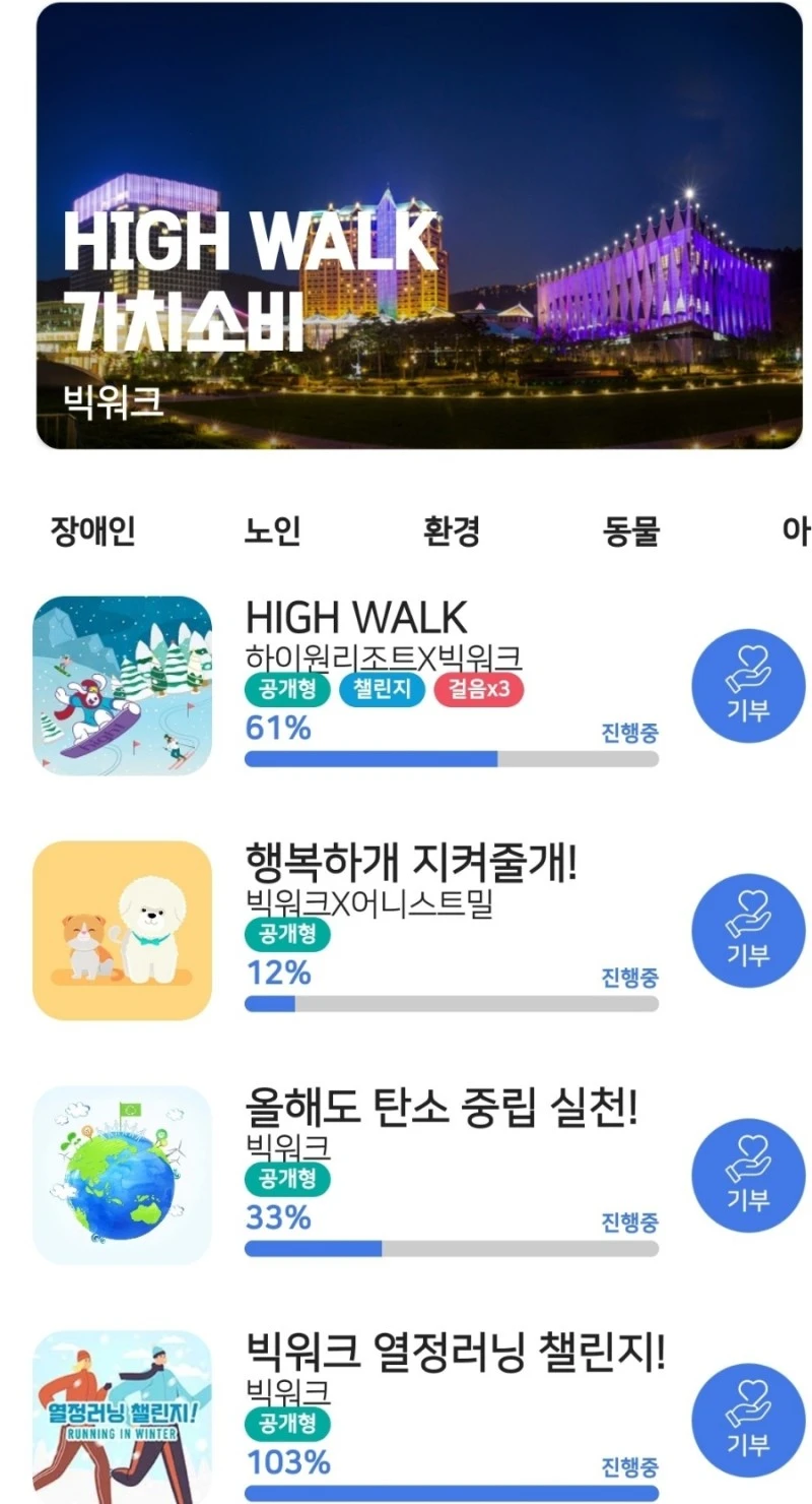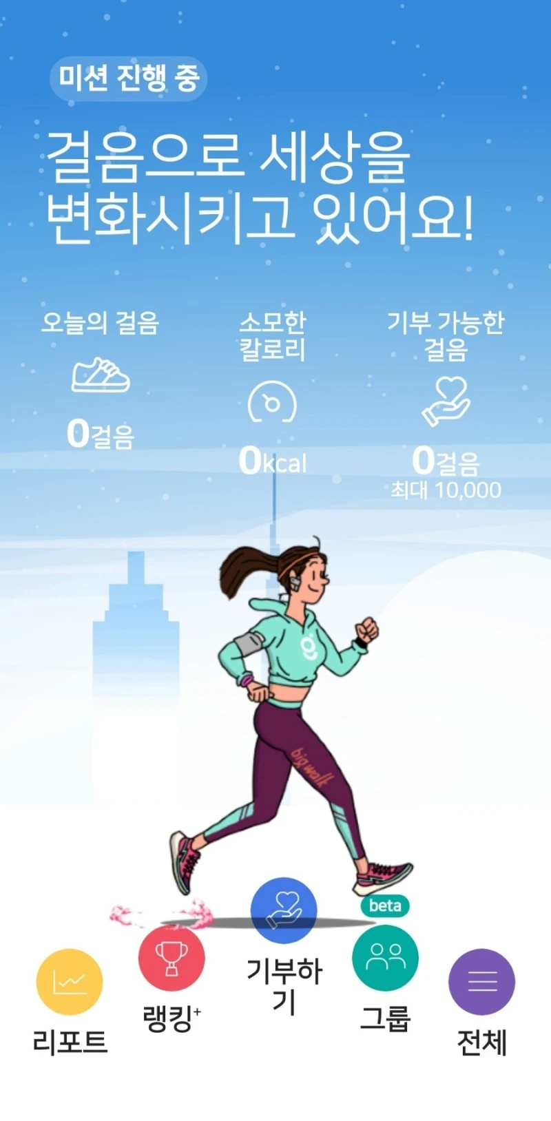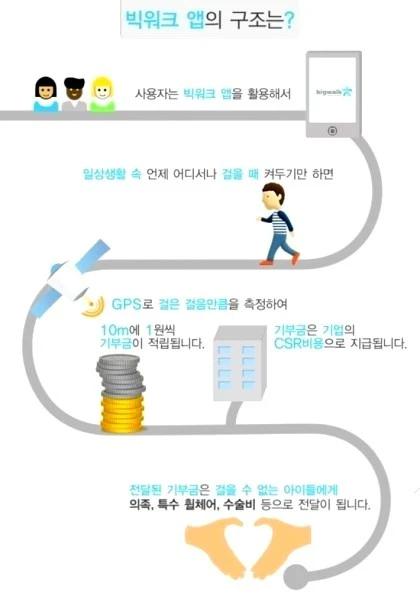 ◆ 빅워크 APP : 걸음 포인트를 모아 기부할 수 있는 애플리케이션. 10M당 1원씩 적립