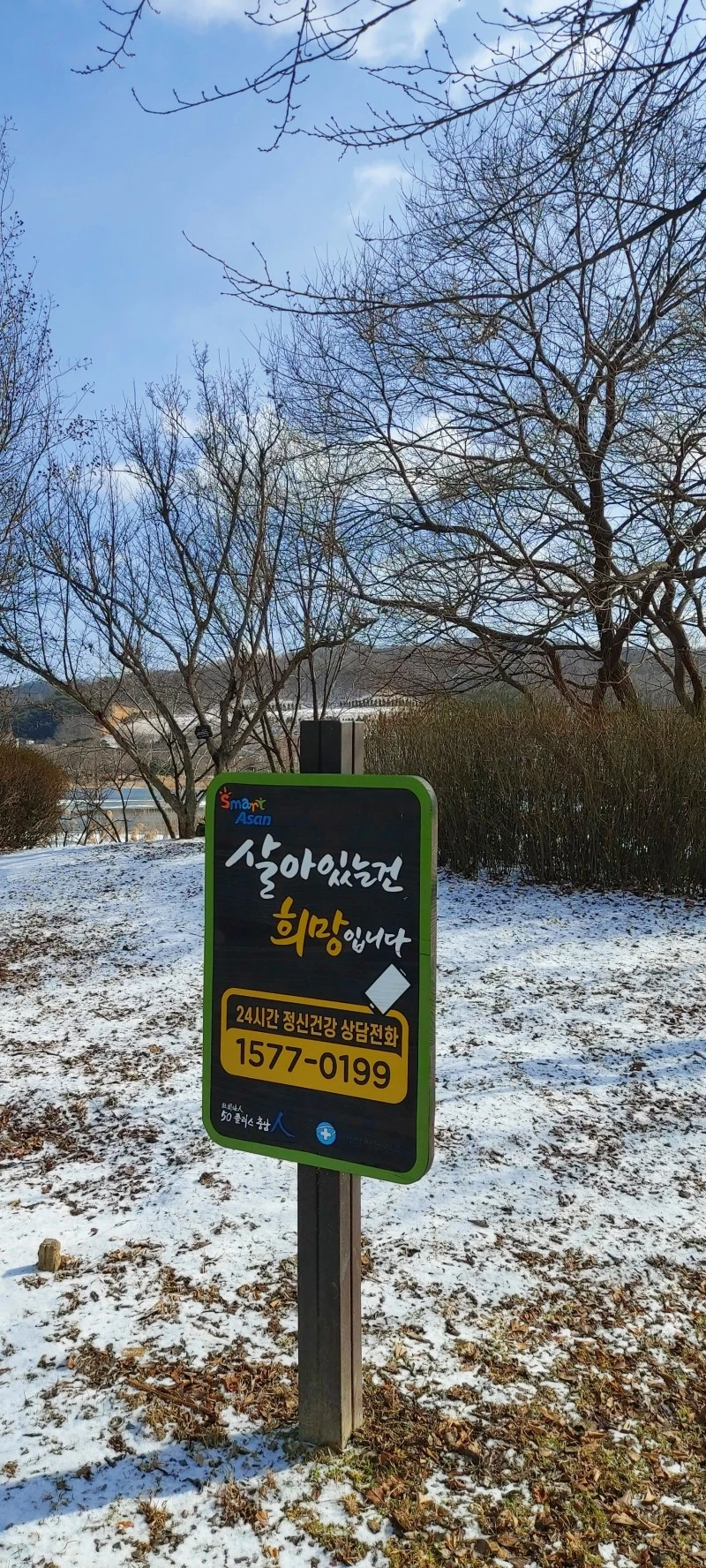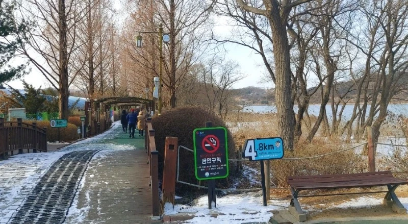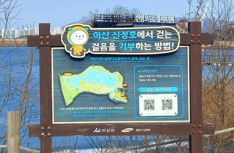 주목할 점은 '빅워크' 앱을 깔고 신정호를 걸으면서 적립된 걸음 포인트를 도움이 필요한 곳에 기부할 수 있다는 사실이다. 이 사실이 주차장 위쪽 안내판에 설명되어 있는데, 영하 7도의 날씨라 추위에 동동거리느라 이 안내판을 제대로 못 보고 지나치는 바람에 신정호를 한 바퀴 다 돈 뒤에야 알게 됐다. 기부할 기회를 놓쳤다는 사실에 몹시 안타까웠다.