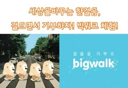 걸으면서 건강도 챙기고, 좋은 일도 할 수 있는 빅워크 앱을 폰에다 꼭 까시고 한 바퀴 돌아보시길~