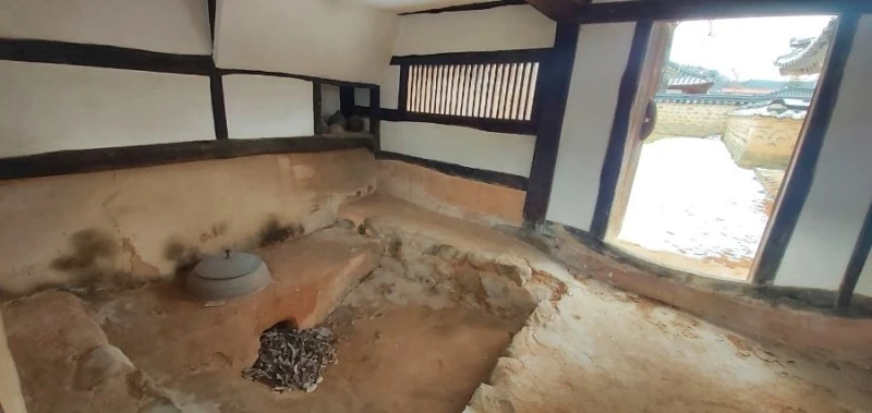 안주인이 기거하던 안채는 대청을 중심으로 좌우 양측이 대칭을 이루고 있어요. 좌우에는 큰방과 작은방, 양측에 부엌을 배치하여 큰방은 시어머니, 작은방은 며느리가 기거하였다네요. 안채는 좌우 전면의 돌출된 부분에 부엌이 배치되어 있는 점이 독특하다 해서 궁금했는데, 이번에 그 궁금증을 해결했답니다. 시어머니가 동쪽 방을 쓰고, 며느리가 서쪽 방을 썼던 것으로 짐작이 되는데 시어머니가 거처하는 쪽의 부엌이 큰 부엌이고, 며느리 쪽 부엌은 작은 부엌이었어요. 나뭇결이 살아있는 나무문과 연기 빠져나가라고 만든 살창이 어릴 적 고향집의 부엌을 떠올리게 해 주었답니다.