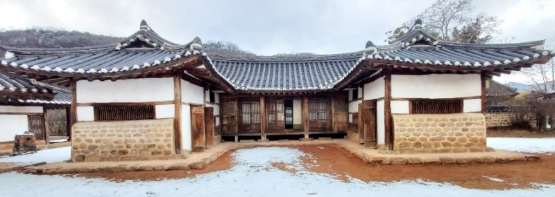 김명관 고택은 후세에 보수하거나 개조되지 않아 원형 그대로 보존되어 왔고, 주변과 조화를 이룬 모습에서 균형미가 드러나지요. 처마의 흐름이나 기둥의 배열이 소박하면서도 세련되고 아름답다는 평을 받고 있어요.
