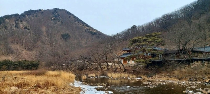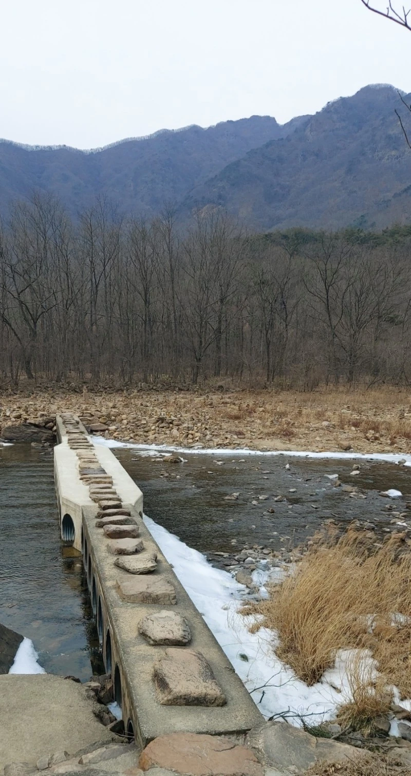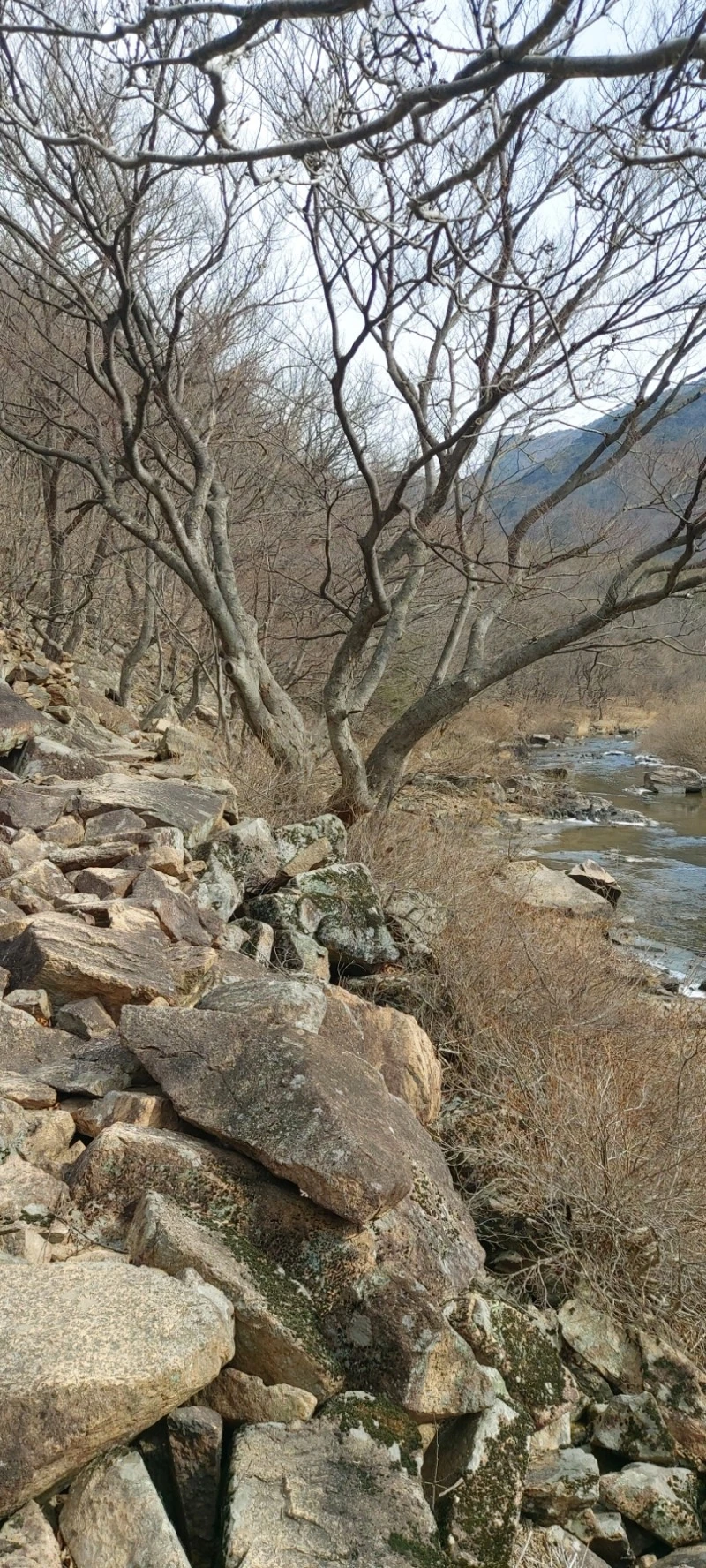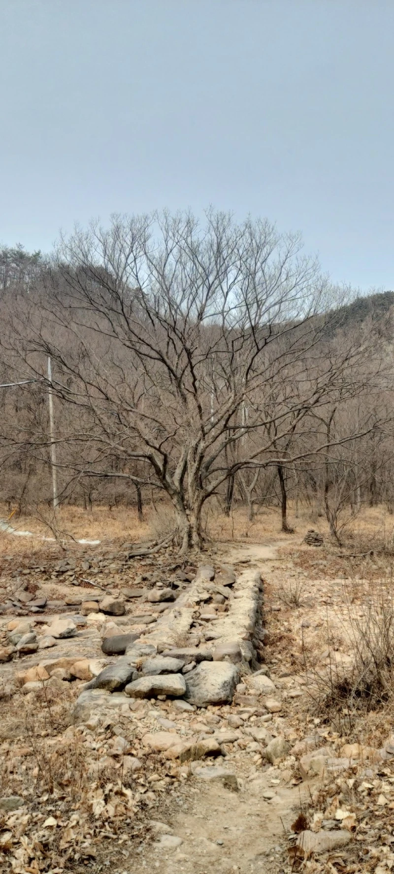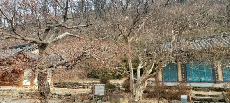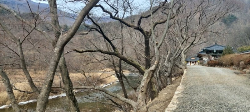 반야사 주차장에 차를 댄 뒤 극락전 앞의 500년 된 배롱나무가 한겨울에도 안녕한지 안부인사를 한 뒤 절 입구의 징검다리를 건너 백화산 둘레길로 갔답니다.