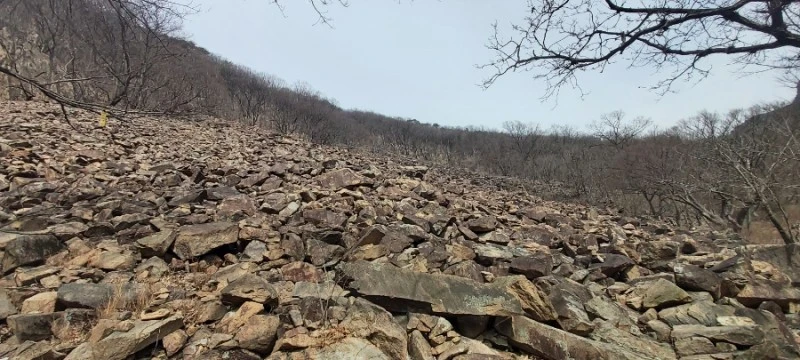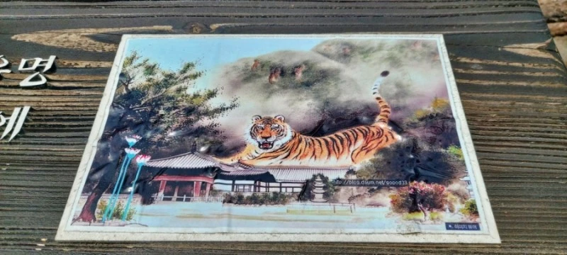 길 중간쯤, 산에서 흘러내린 커다란 돌무더기가 앞에 보이는데요, 이게 바로 반야사 경내에서 보면 커다란 호랑이 형상으로 보이는 것이에요. 백화산 기슭에서 긴 세월동안 흘러내린 돌무더기가 주변에 있는 나무들과 경계를 이루어 마치 포효하는 호랑이 형상을 하고 있어 '반야산 호랑이'라 불리지요. 이곳은 반야사의 대표적인 명소중 하나로, 나뭇잎이 무성한 여름철에 백화산 반야사에 살고 있는 호랑이를 가장 선명하게 볼 수 있다고 해요.
