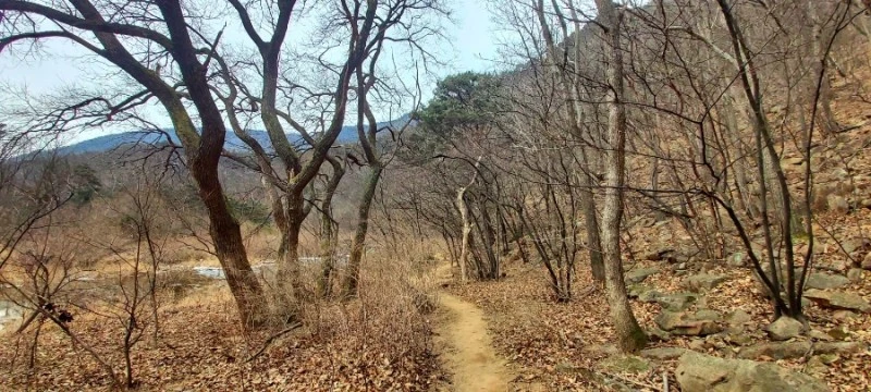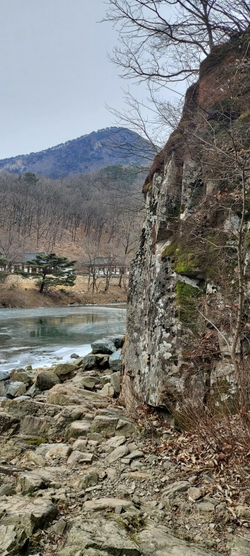 우리가 갔던 2월 19일은 절기상 우수라 눈이 녹아 비가 되는 날임에도 월류봉 앞은 너무 추워서 풍경사진만 몇 장 찍고 후다닥 차로 들어와야 했는데, 반야사 맞은편의 백화산 둘레길은 바람 한 점 없이 따스했답니다. 백화산의 이쪽저쪽 차이인가 싶더라구요.
