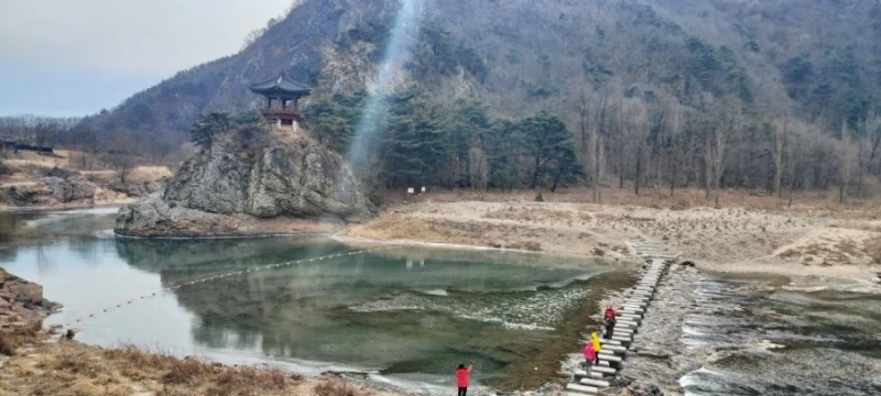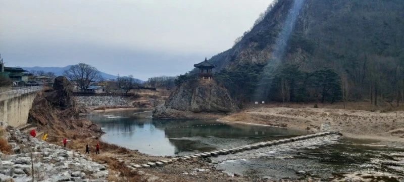 월류봉의 겨울풍경을 사진에 담은 뒤 반야사로 갔답니다. 반야사 가는 길에 2구간에 있는 빨간 목교(우리는 이 다리가 샤론교회 뒷편에 있어서 '샤론다리'라고 불러요^^)에 눈길 한 번 주고,
