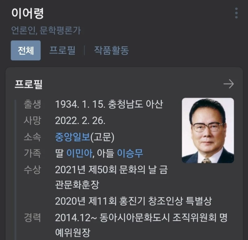 고인은 1933년 충남 아산에서 출생(호적상 1934년생) 문학평론가, 언론인, 교수 등으로 활동하며 한국 대표 석학이자 우리 시대 최고 지성으로 불렸다. 노태우 정부 때 신설된 문화부 초대 장관(1990~1991)이었으며 대한민국예술원 회원이다.