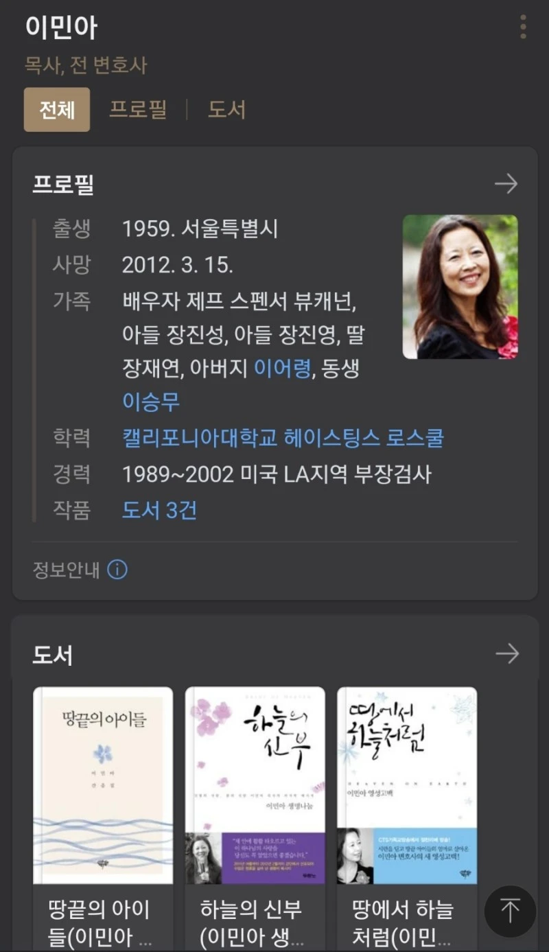 (이민아 목사는 이어령 전 문화부 장관의 딸, 김한길 전 국회의원과의 결혼과 이혼, 암 발병, 애지중지하던 큰 아들을 잃은 사연 등으로 세간의 눈길을 끌었던 분으로 저는 이분이 돌아가시기 전부터 <땅끝의 아이들> 책을 읽고 참 좋아하게 됐지요.)