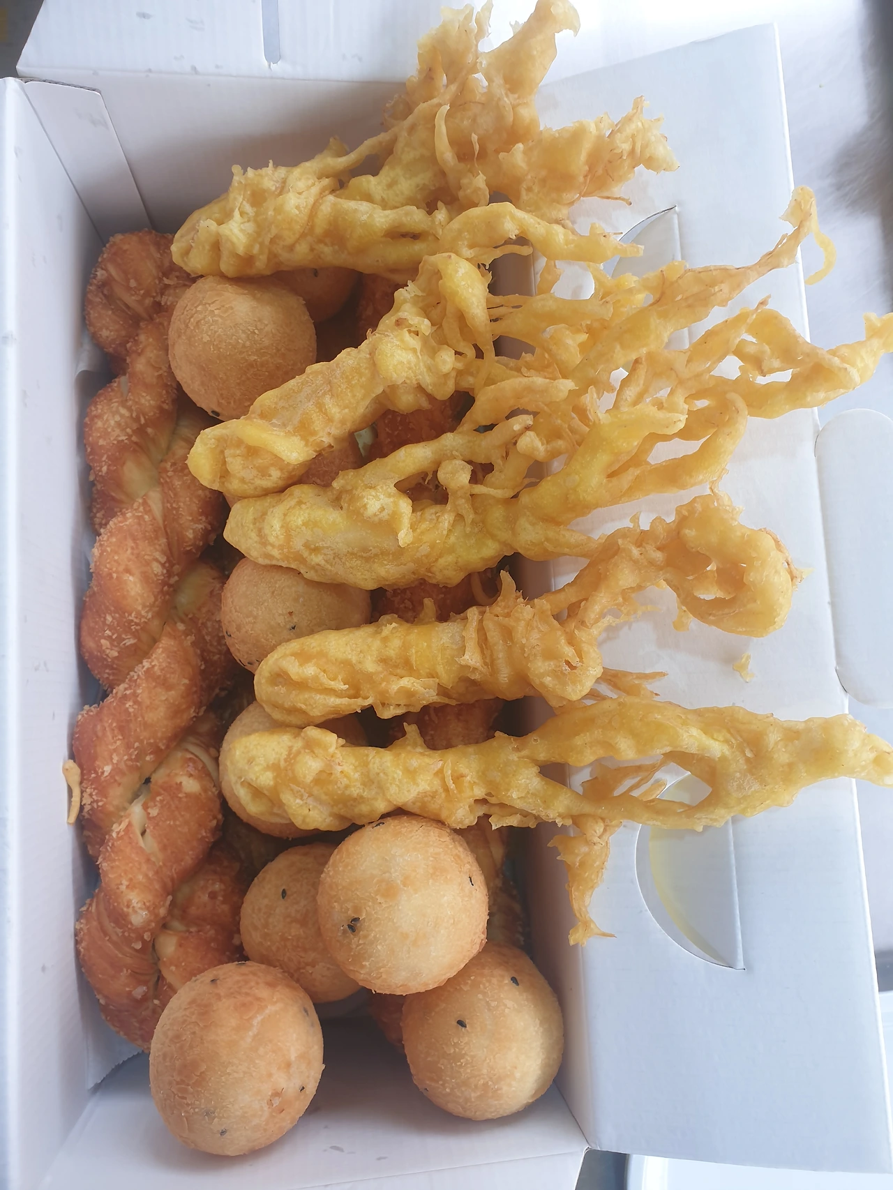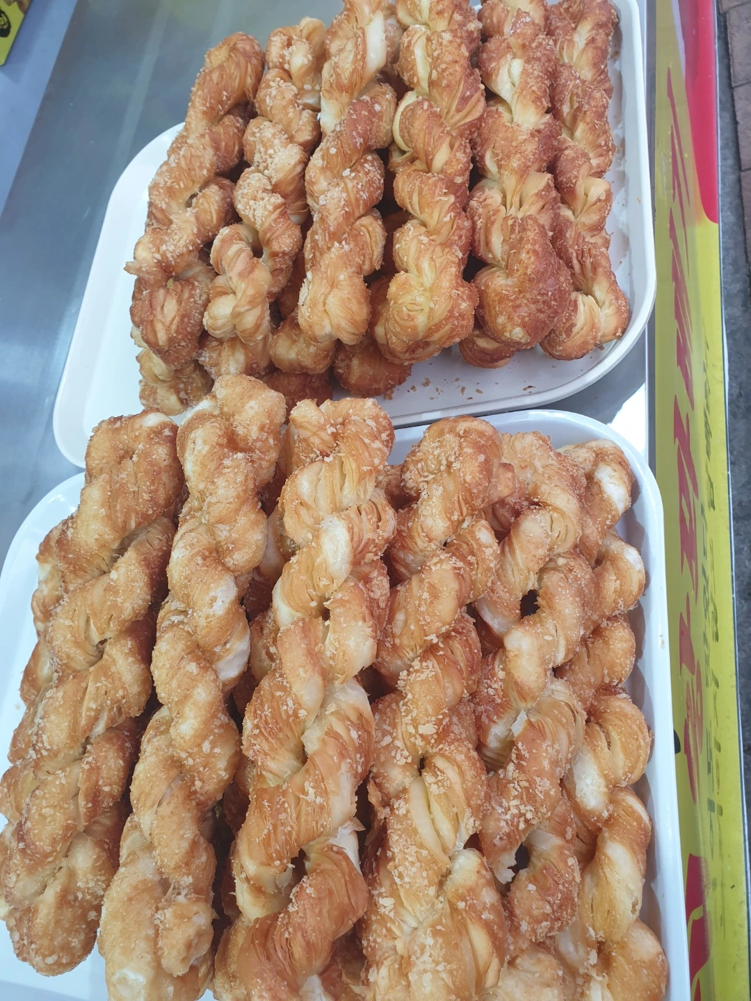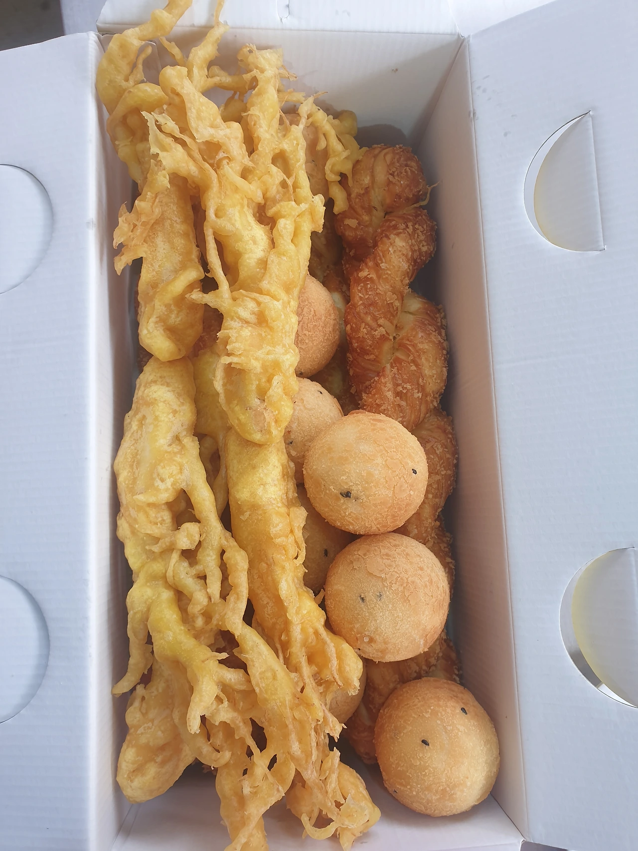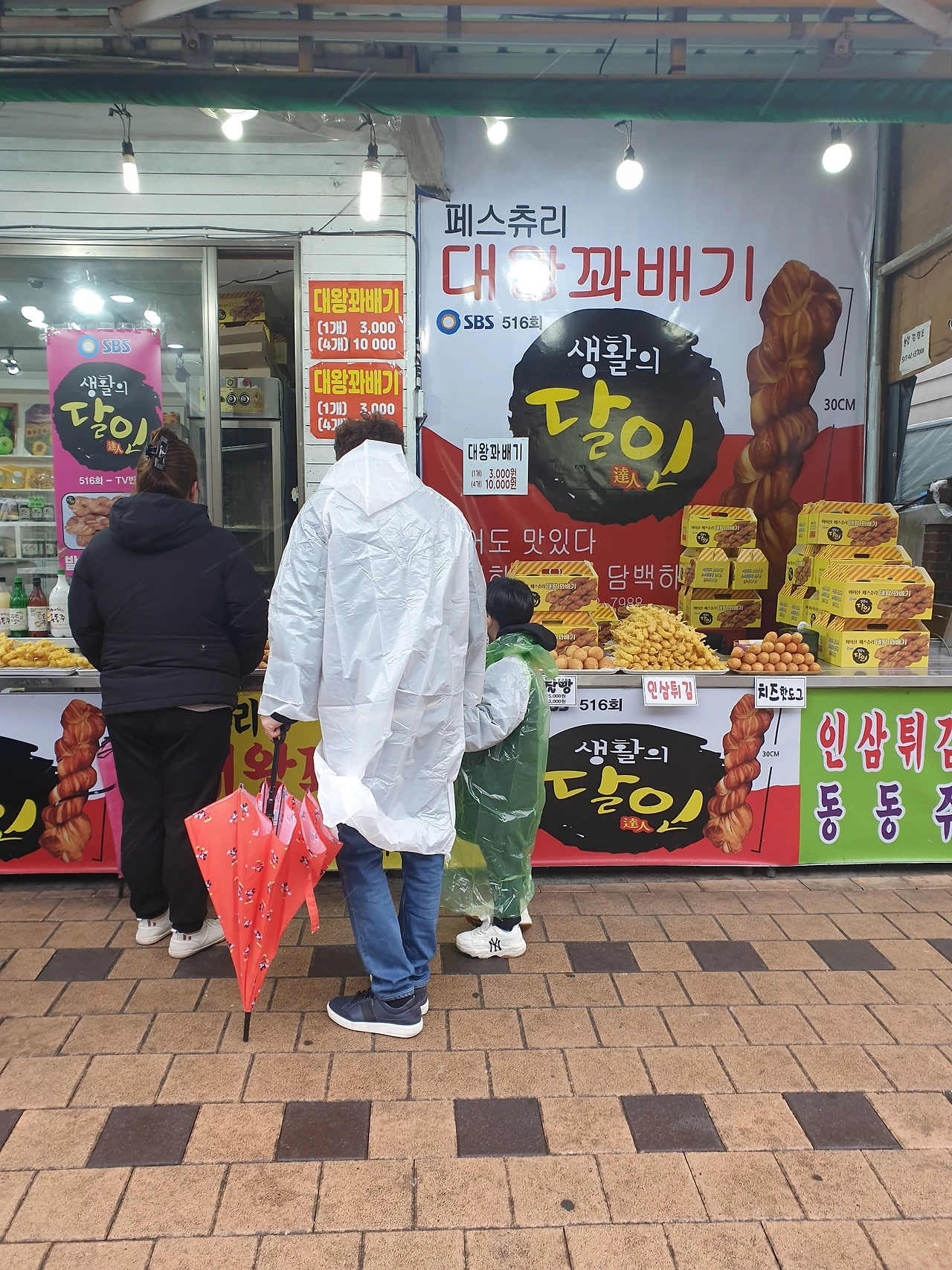 그간 꽈배기만 사먹느라 몰랐는데, 인삼튀김도 파시더라구요. 어머님께서 작년에 금산 인삼시장의 인삼튀김을 맛있게 드셨던 게 생각나서, 가격을 여쭤보니 인삼튀김은 한개 2천원, 한 접시 만원이라고 하셔서 어머님 드리려고 한 접시 포장하고, 옆에 찰깨빵이 보여서 그건 5개 3천원, 9개 5천원이라고 하셔서 아이들 먹게 그것도 5천원어치 사서 같이 박스에 담아왔어요. 2만 5천원으로 풍족한 나들이 선물이 되었어요.