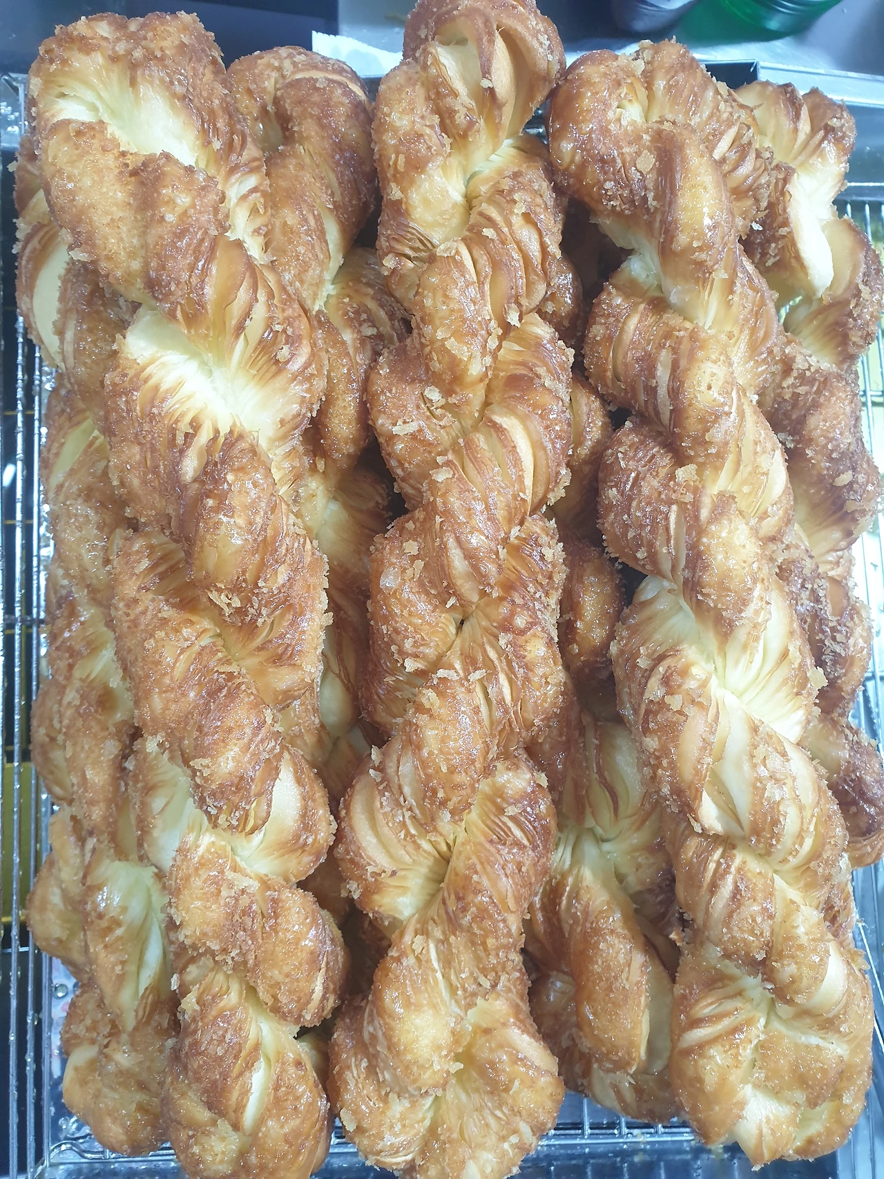 입맛 까다롭기로 유명한 남편이 전국에서 가장 맛있는 꽈배기라고 칭찬을 마다하지 않는 꽈배기랍니다. 지난 겨울에 강원도 가는 길에 이영자가 추천했다는 금왕휴게소 형제꽈배기를 먹어본 적이 있는데, 아... 그게 왜 그렇게 맛있다고 소문났는지 모르겠더라구요. 쪼그만 게 가격은 어찌나 비싸던지... 그때 간절하게 마이산 꽈배기가 그리웠답니다. SBS '생활의 달인' 516회에도 나온 적 있는 30cm 크기의 대왕꽈배기, 마이산 탑사와 벚꽃길 구경하러 가시게 되면 꼭 드셔보세요. 정말 끝내주는 맛이랍니다. 심지어 식어도 맛있어요! 진안맛집, 마이산맛집이란 수식어가 딱 어울리는 곳이지요.거기에다 꽈배기맛집까지!^^