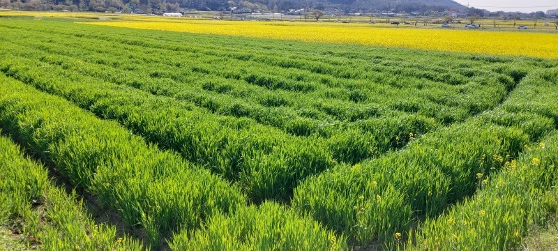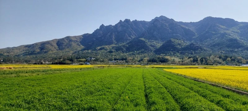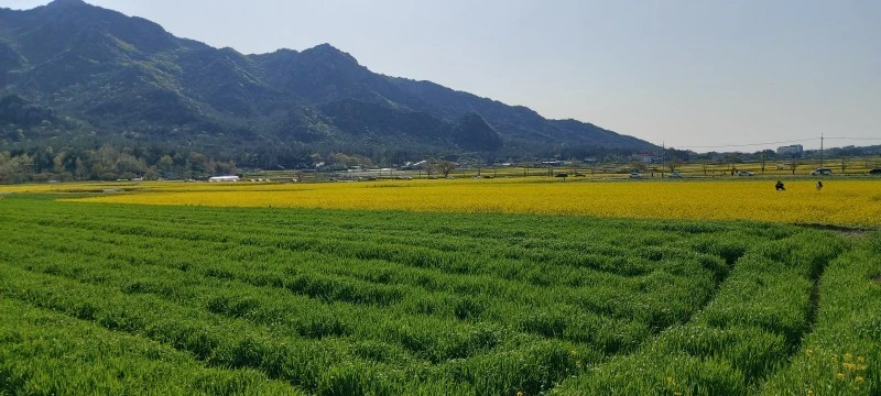 월출산 유채꽃밭은 다른 유채꽃 명소에 비해 많이 알려지지 않아서 비교적 찾는 사람들이 적은데다, 기암괴석이 늘어선 월출산 아래 푸른 보리밭과 함께 어우러지는 풍경이 독보적인 아름다움을 자아낸답니다. 게다가 유채꽃이 진 다음엔 점차 노랗게 익어가는 보리밭과 푸르러진 유채밭이 다시 노랑 초록 대비를 이루며 지금의 풍경과 또다른 묘미를 보여주니까, 좀 천천히 가도 노랑과 초록의 멋진 대비를 볼 수 있다는 장점이 있지요.